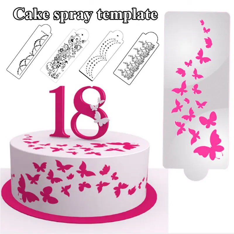 Трафарет для торта с цветочным узором и бабочкой, пластиковый кружевной полый трафарет для торта, трафареты, шаблон сделай сам, форма для рисования, инструменты для украшения тортов