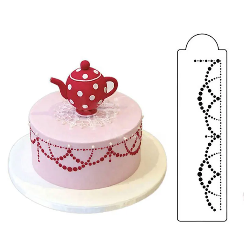 Кружевной трафарет в горошек и цветов для торта на день рождения, п...
