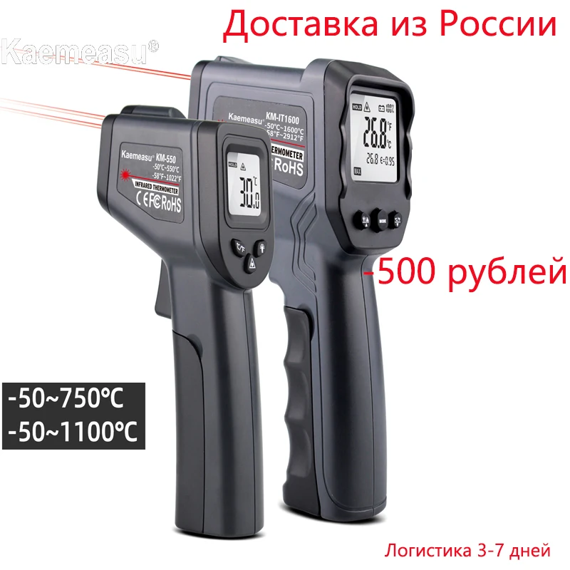 Цифровой инфракрасный термометр, двойной лазерный измеритель температуры, Бесконтактный пирометр, промышленный наружный инфракрасный термометр, пистолет-50 750