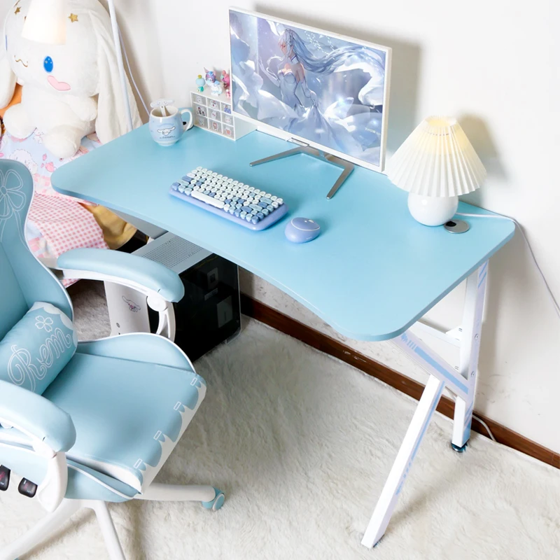 Новый Синий игровой стол, эргономичный профессиональный игровой стол со светодиодной подсветкой для дома и офиса, компьютерный Рабочий стол для девочек