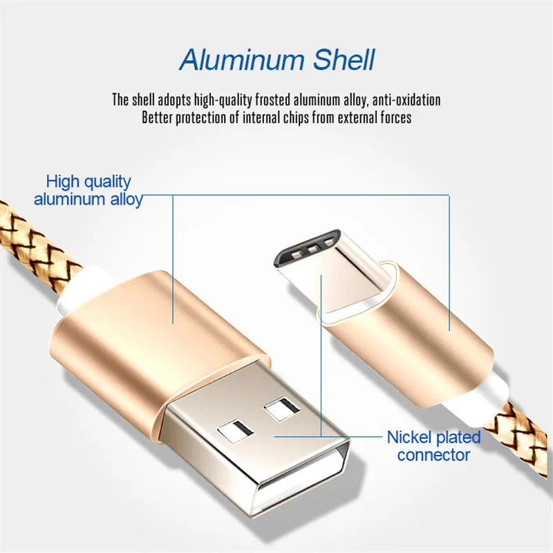 УГИ 1 м 2.4A Золотой USB кабель с нейлоновой оплеткой Быстрый заряд...