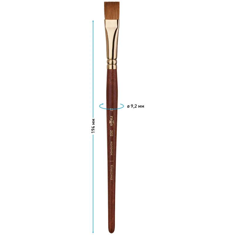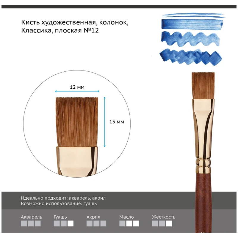 Кисть художественная Гамма "Классика", колонок, плоская, 12
