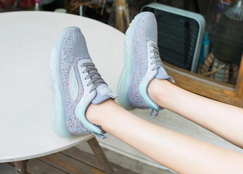 Кроссовки женские теннисные, дышащие сетчатые светящиеся спортивные туфли, легкая роскошная дизайнерская обувь для бега