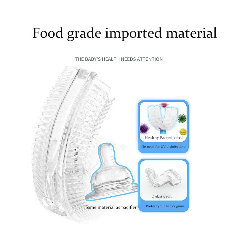 Метод чистки 45 ° для эффективной очистки.Силиконовая мягкая кисть для сосков не повреждает десны.Детская u-образная головка щетки хорошо обернута.Пищевой силикон, более устойчивый к укусам и очиститель.Посылка включает в себя: