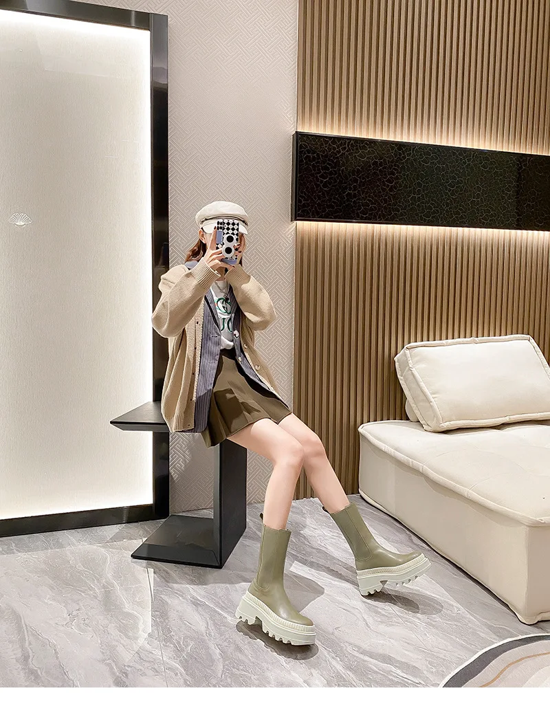 Новинка; Сезон весна-осень; Ботинки Martin для женщин; Ботинки на платформе в английском стиле; Женские ботильоны «Челси»