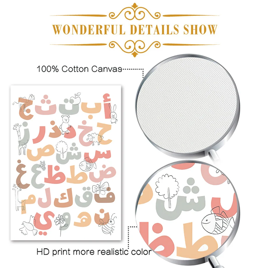 Исламский арабский алфавит мультфильм розовый малыш настенная Картина на холсте скандинавские плакаты и принты настенные картины декор для детской комнаты девочки