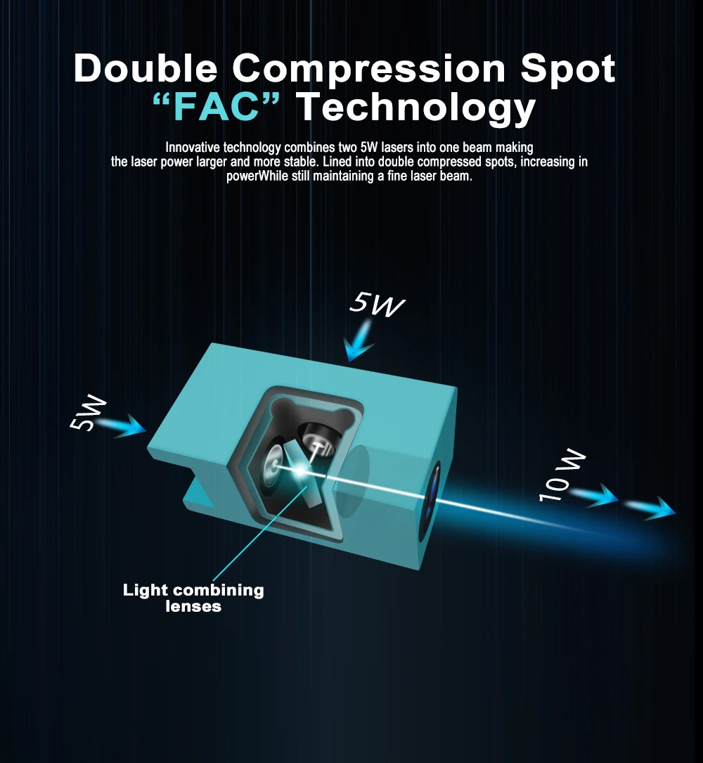 Модель 80 Вт (лазерный выход 10 Вт) поддерживает больше материалов для гравировки и резки, имеет более тонкую гравировку и более высокую скорость гравировки по сравнению с моделью 40 Вт (лазерный выход 5 Вт)