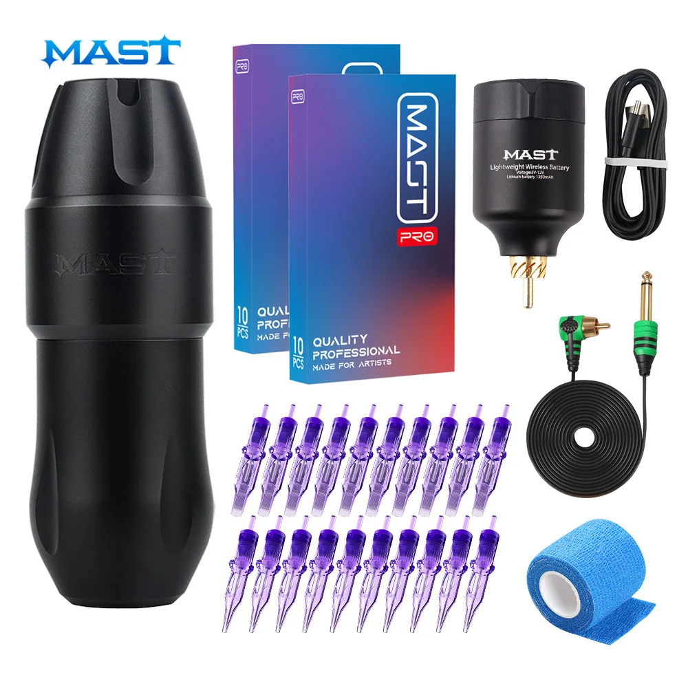 Беспроводной набор тату-машинки Mast Tour Pro, быстрая зарядка, RCA перезаряжаемый ЖК-аккумулятор, источник питания, набор игл для картриджа PMU