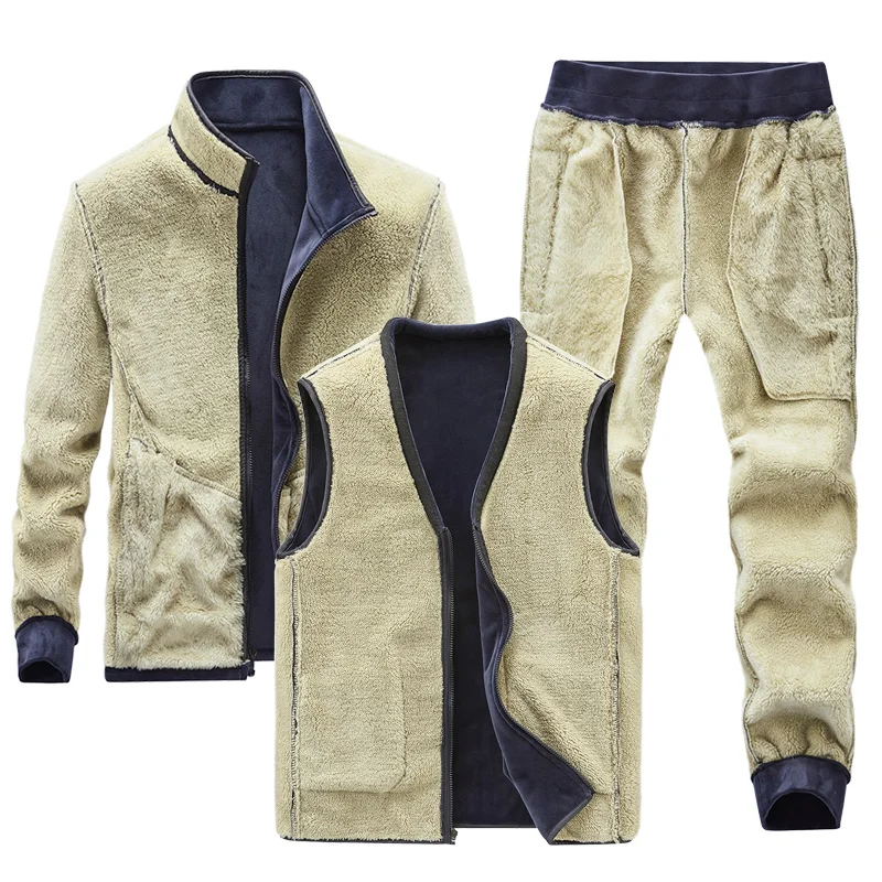 Новый Мужской флисовый костюм из серебристой лисы, бархатный зимний плотный теплый костюм, бархатный костюм из ягненка, повседневный тренировочный костюм, толстовка + брюки большого размера 8Xl