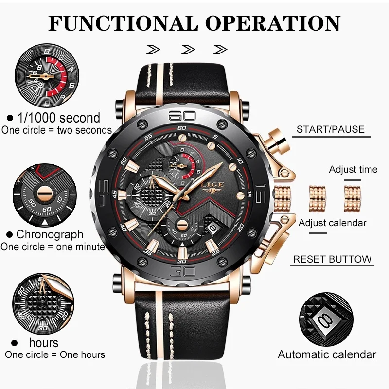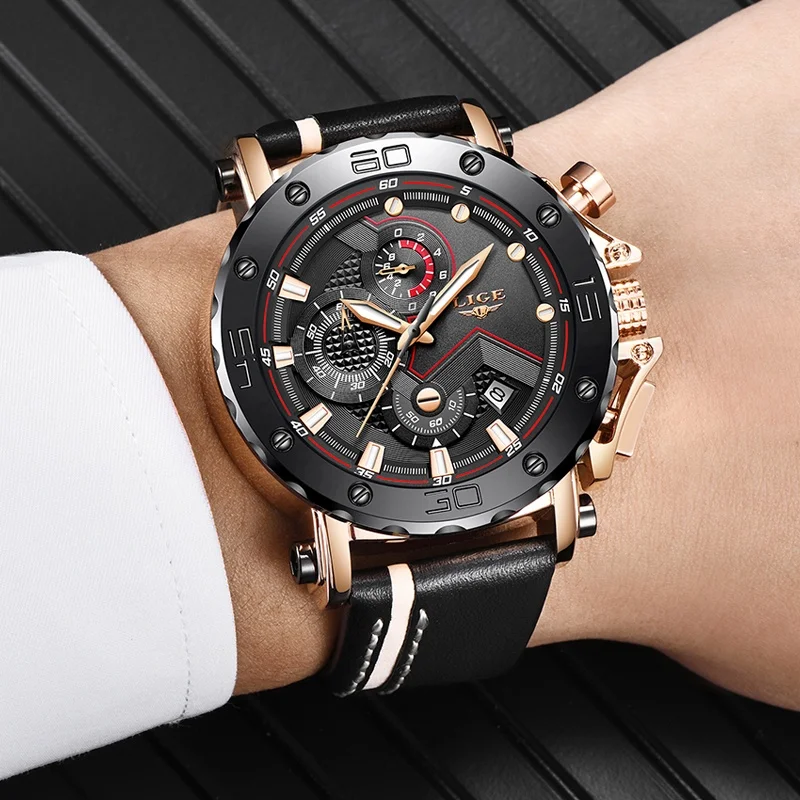 Часы наручные LIGE Мужские кварцевые с календарем, модные брендовые Роскошные спортивные с хронографом и датой