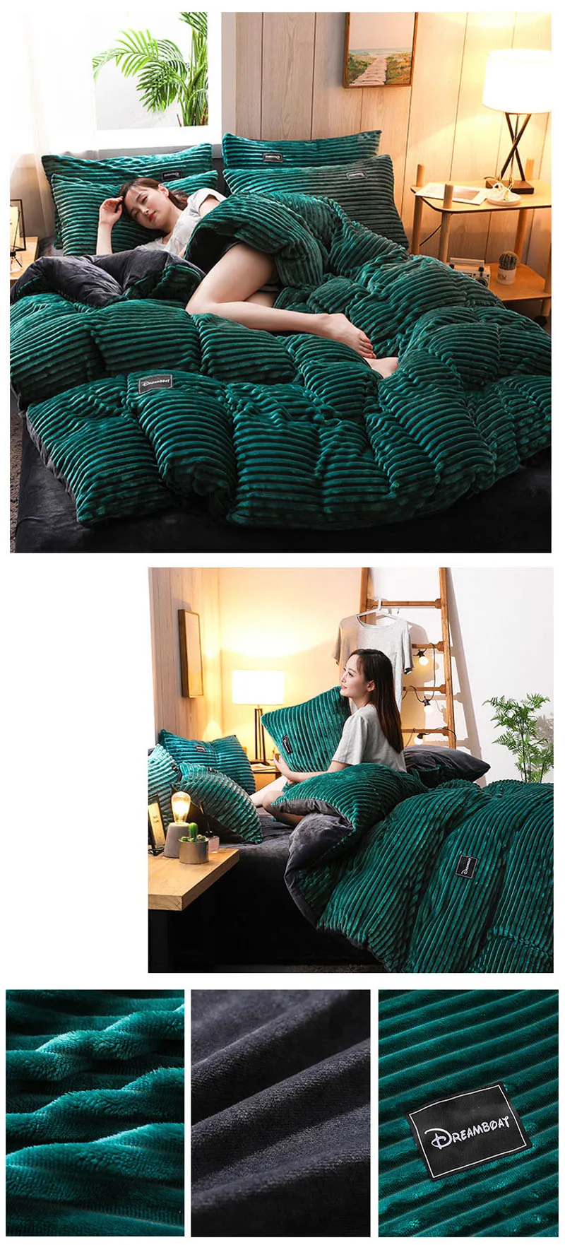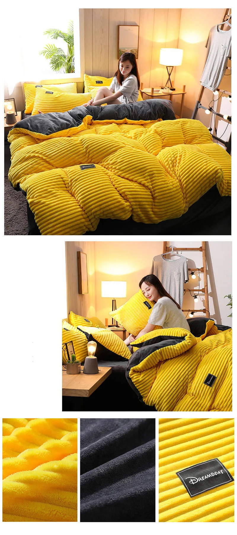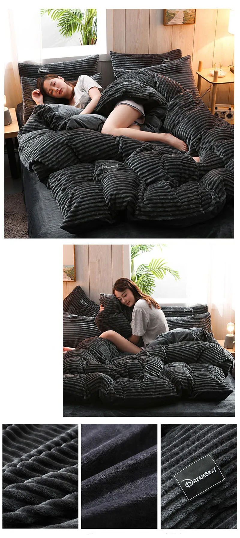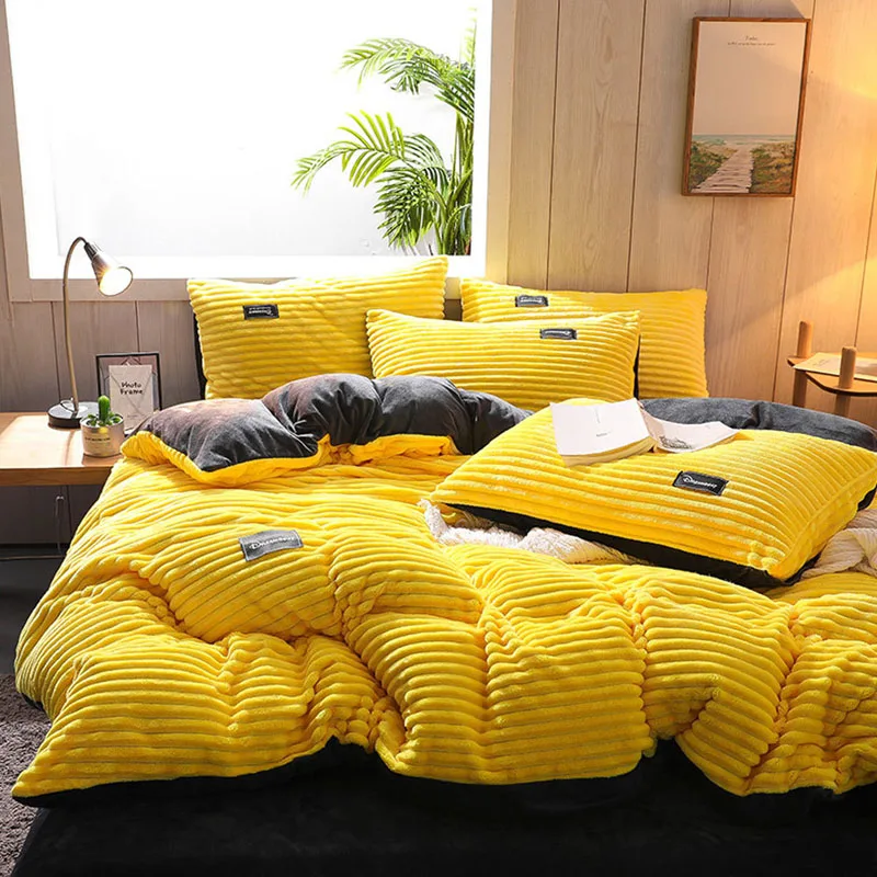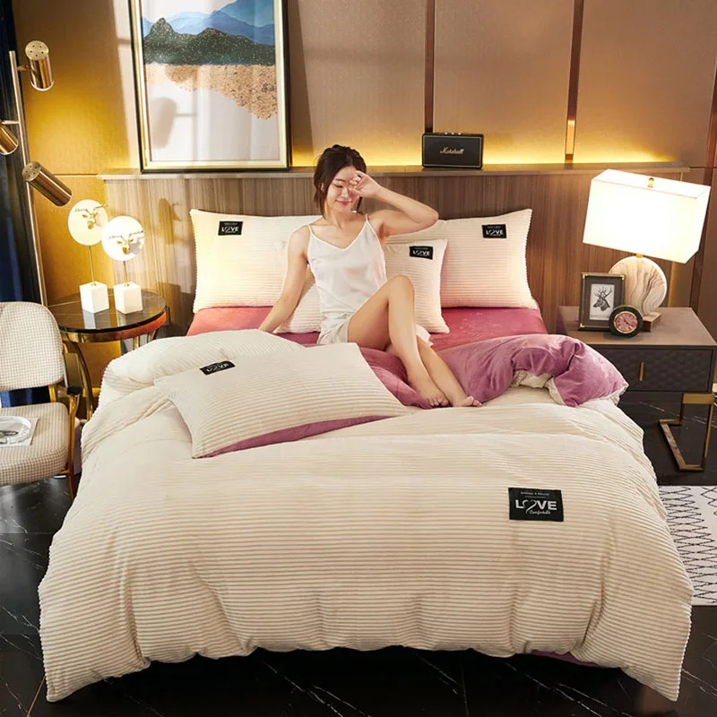 Бархатный пододеяльник для двуспальной кровати, зимний теплый волшебный флис серого, синего цветов, в полоску, коралловый флис, двойные пододеяльники