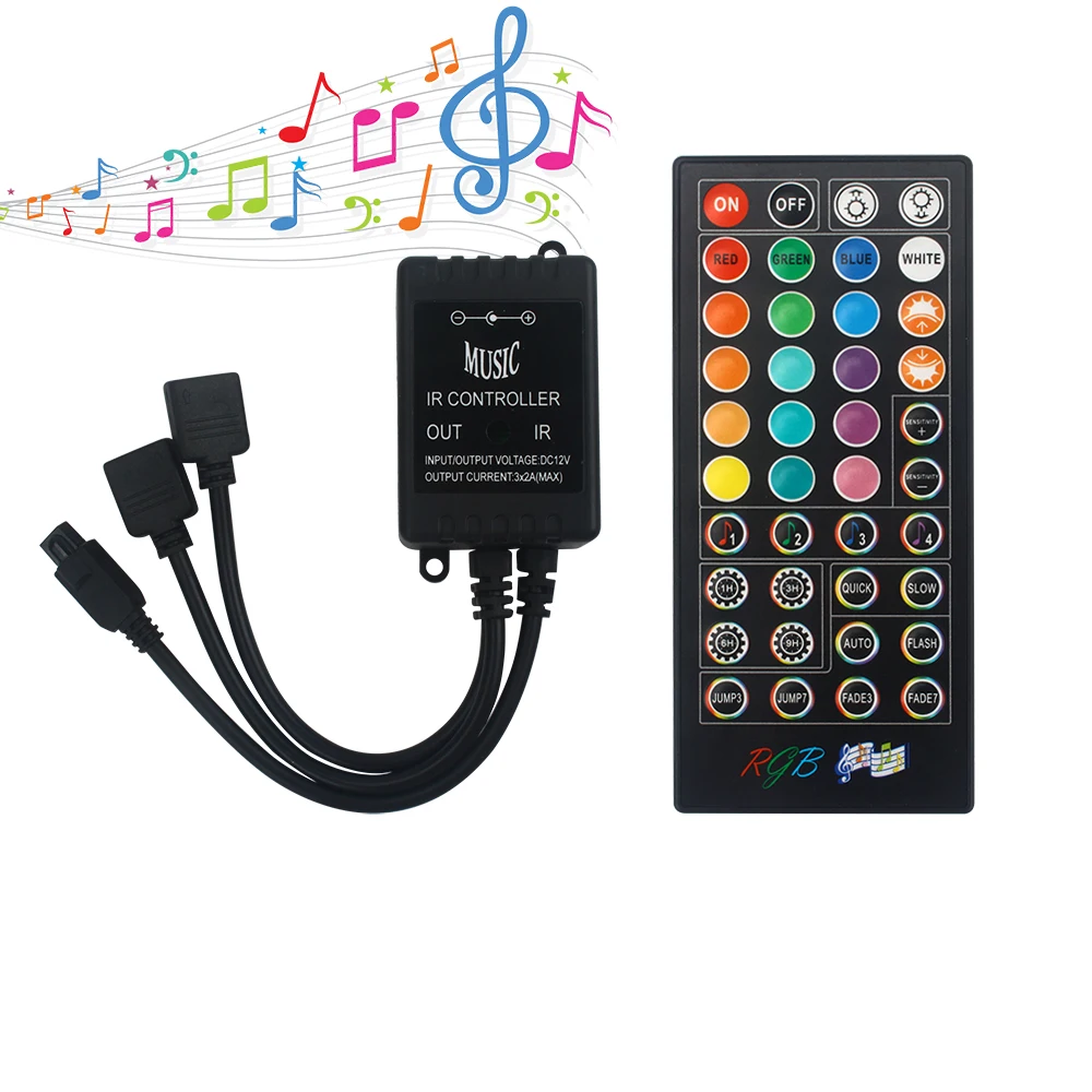 Особенности:40 клавишный инфракрасный музыкальный светодиодный контроллер принимает усовершенствованный микро-блок управленияНизкая стоимость, удобное подключение и простота использованияМежду тем вы можете настроить яркость, статические цвета и изменение цвета с помощью ИК-пульта дистанционного управленияКогда он находится в режиме звукового управления, цвета изменятся с музыкальным ритмомХарактеристики:Модель: 40Key RGB IR пульт дистанционного управления музыкой с двойным выходомВходное напряжение адаптера: AC85V-265VВыходное напряжение адаптера: DC12VВыходная мощность: 36 ВтУдаленное Расстояние в пределах: 10 мВес нетто: 79 гРазмер упаковки: 180 мм x 150 мм x 10 мм/7,08 "x 5,9" x 0,39"Тип светодиодный: SMD 5050Применение:Он широко используется для управления Различные светодиодный подвесной светильник. Например, точечный светильник, гибкий ленточный светильник, настенный светильник, стеклянный настенный светильник для занавесок и т. д.Посылка включает в себя:1x40 клавишный ИК-музыкальный светодиодный контроллерВнимание:Подключите линии нагрузки и линии электропередачи, убедитесь, что все соединения верны перед включением питанияУбедитесь, что нет препятствий между ИК-контроллером и приемником при работеЭтот продукт не должен использоваться на открытом воздухе и в любой другой влажной среде. Не допускается прикосновение к воде или любой жидкости. Не влияет и не стучится. Не следует использовать в условиях высокой температуры и высокого давления, чтобы избежать повреждения продукта, и вызвать короткое замыкание, пожарную аварию, Электрический шок и т. д.