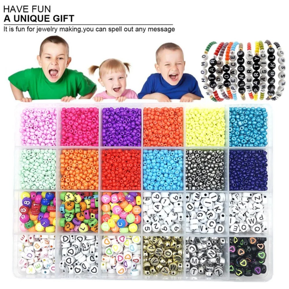 Набор бусин и букв для изготовления ювелирных изделий, небольшие цв...