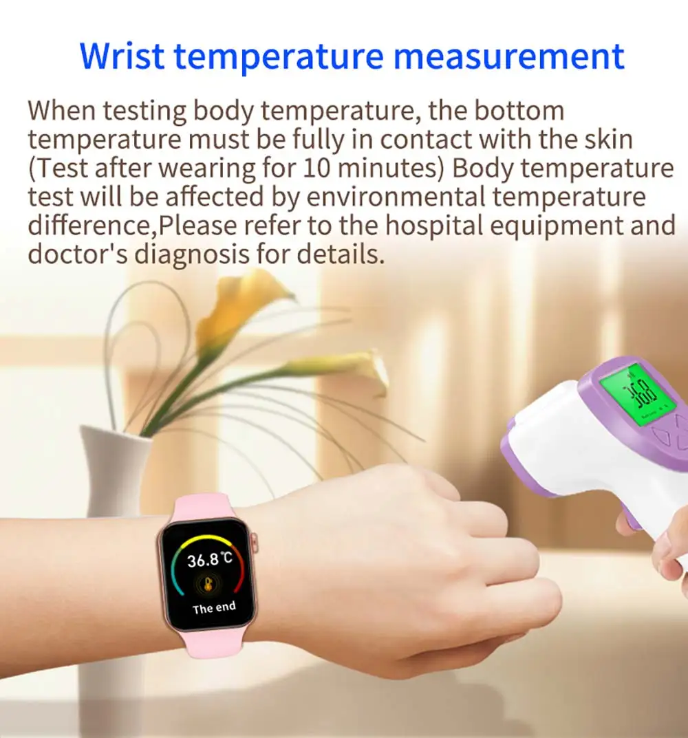 Лучше всего для пользователей носить браслет в течение 10 минут и закрыть металлическую пластину на задней части продукта на кожу внутри запястья для измерения температуры тела. Если отклонение данных большое, пожалуйста, проверьте еще несколько раз.