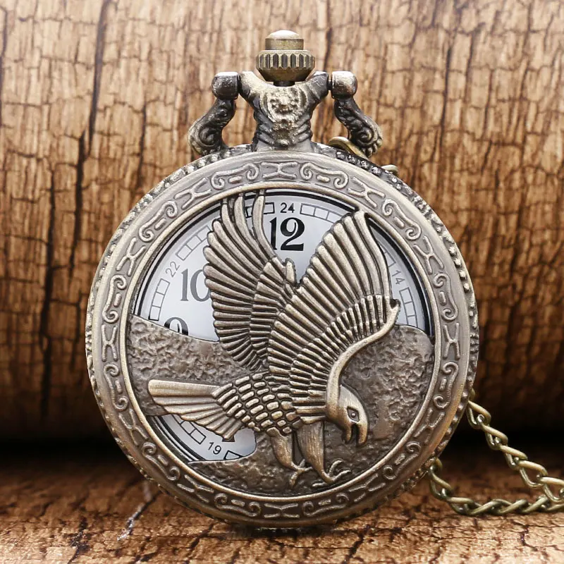 Бронзовые Ретро Винтажные карманные часы с орлом на цепочке с подвеской кварцевые часы для мужчин и женщин Подарки Relogio De Bolso Прямая поставка