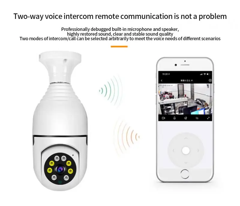 Камера видеонаблюдения с лампочками E27, 720P, Wi-Fi, IP, PTZ, ИК, ночное видение