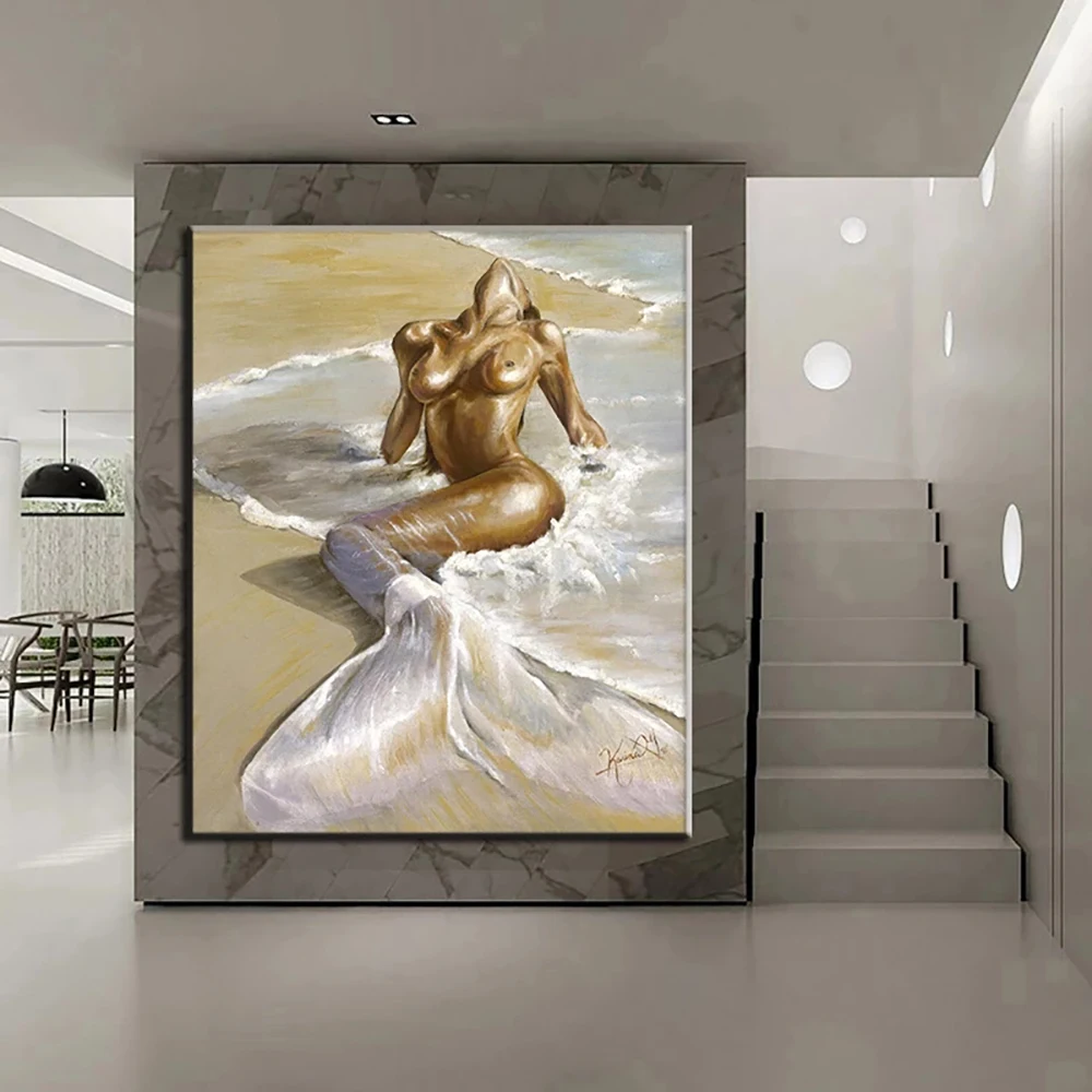 Картина на холсте с изображением русалки, Картина на холсте с сексуальным обнаженным женским побережьем, Настенная картина для спальни, комнаты, домашний декор