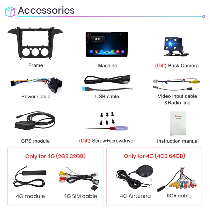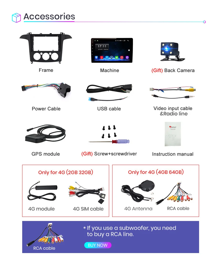 1). После поиска спутникового сигнала успешно в первый раз, время и дата будут обновлены;2). Обратите внимание, что операционная система и предустановленные приложения занимают часть памяти; Карта России занимает около 3 Гб; Карта Европы занимает около 7 Гб;1. В чем разница между WiFi и 4G версией?Устройство оснащено Навигатором, воспроизведением музыки, функцией парковки и т. д. для подключения к Интернету версии Wi-Fi должны служить вашим смартфоном в качестве точки доступа. Для владельцев автомобилей, которые часто используют Интернет во время путешествия, мы рекомендуем купить версии 4G.2. Если вам не нравится товар, возможно ли его вернуть?Если вы не удовлетворены товаром, вы можете вернуть товар, вернуть его на наш склад в России/Испании/Китае.3. Как настроить рулевое колесо управления> Версии WIFIНастройка -- Автомобильная развлекательная информация -- SWC -- сначала нажмите clearall --- затем нажмите на значки. Когда он мигает, нажмите кнопку на рулевом колесе, чтобы соответствовать значку. После успешного обучения цвет изменится.> 4G версииУстановка-genaral -- установка рулевого колесаПожалуйста, нажмите кнопку на рулевом колесе, и в то же время нажмите кнопку на экране, чтобы соответствовать, это изменит цвет после соответствия.Примечание: Если ваш заказ поставляется с canbus, пожалуйста, перейдите для настройки типа canbus, затем кнопка может работать, пожалуйста, свяжитесь с нашей службой поддержки клиентов для получения помощи.4. Как подключить заднюю камеру?1) красный кабель ① подключен к резервному светильник "+";2) черный кабель ② подключен к резервному светильник "-";3) кабель для обнаружения заднего хода ④ (коричневый цвет) подключен к красному кабелю ③, который удлиняется от входного кабеля видео;4) ⑤ кабель не должен быть подключен.