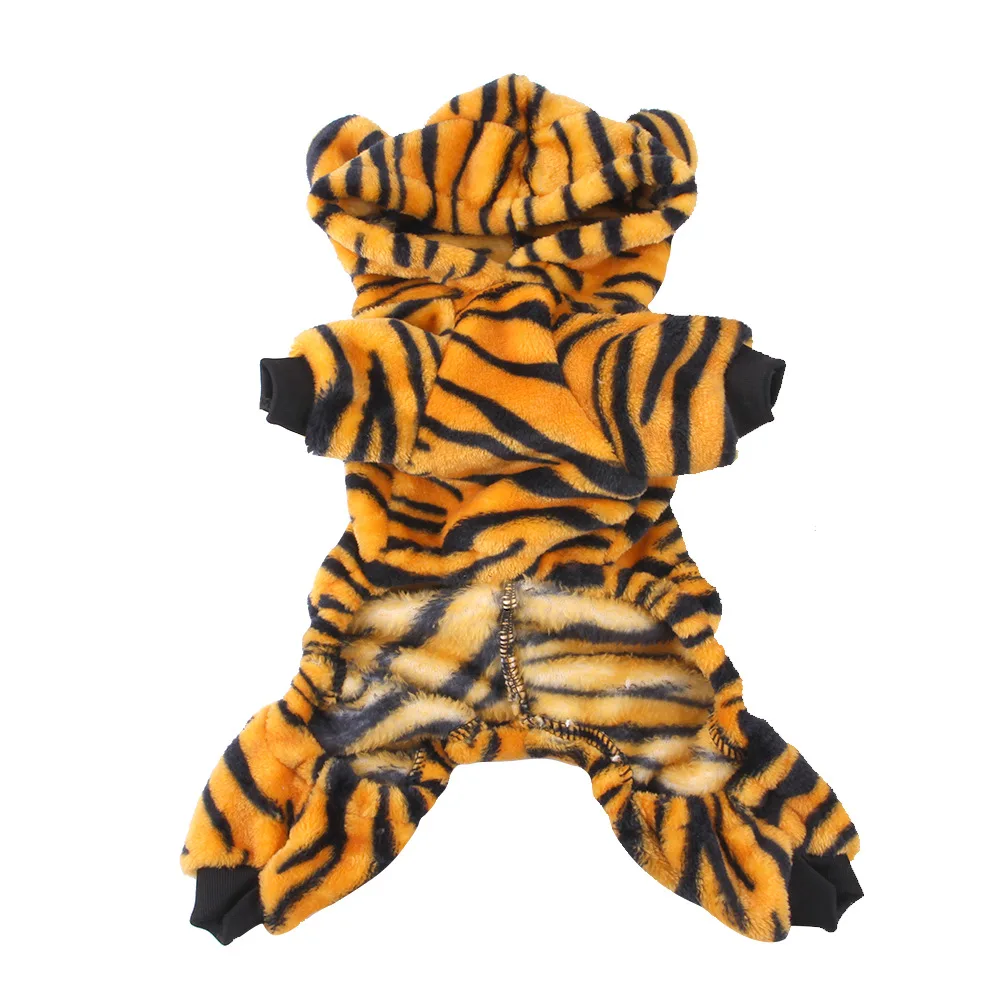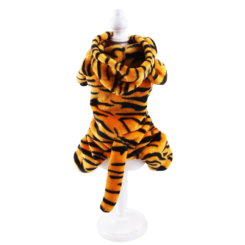 Одежда для собак XYF, платье-трансформер, свитер с капюшоном из кораллового флиса для домашних животных, уличное пальто в форме Тигра для собак, одежда для кошек с четырьмя ногами