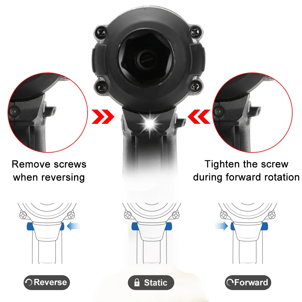 Посылка включает в себя:Тип A1 х электрический ключ1 х коробка для храненияТип B1 х электрический ключ1 х коробка для храненияЗарядное устройство с вилкой EU/US-1 шт.1 или 2 литий-ионных аккумулятора4 x аксессуарыТехнические характеристикиЦвет: черныйБез скорости нагрузки: 0 - 4000 об/минЧастота удара: 0 - 4000 ipmМаксимальный крутящий момент: 520N.MКвадратный привод: 1/2"Аккумулятор: 388VF1 * Емкость аккумулятора: 1*15000 мАч2 * Емкость аккумулятора: 2*15000 мАчОсобенности-Адаптированные к 18V батарея-520N.M высокий крутящий момент, плавный Переключатель изменения скорости.-Мощный электрический ключ, многоцелевой-Вал из вольфрамовой стали, высокая твердость и износостойкость.-Подходит для строительных площадок, технического обслуживания, деревообработки и т. Д.-Бесщеточный двигатель не генерирует искры, когда он работает, и двигатель не изнашивается.Примечание:1. Допускается погрешность в 1-2 см из-за ручного измерения.2. Цвета могут отличаться, так как на дисплее разница, пожалуйста, поймите.