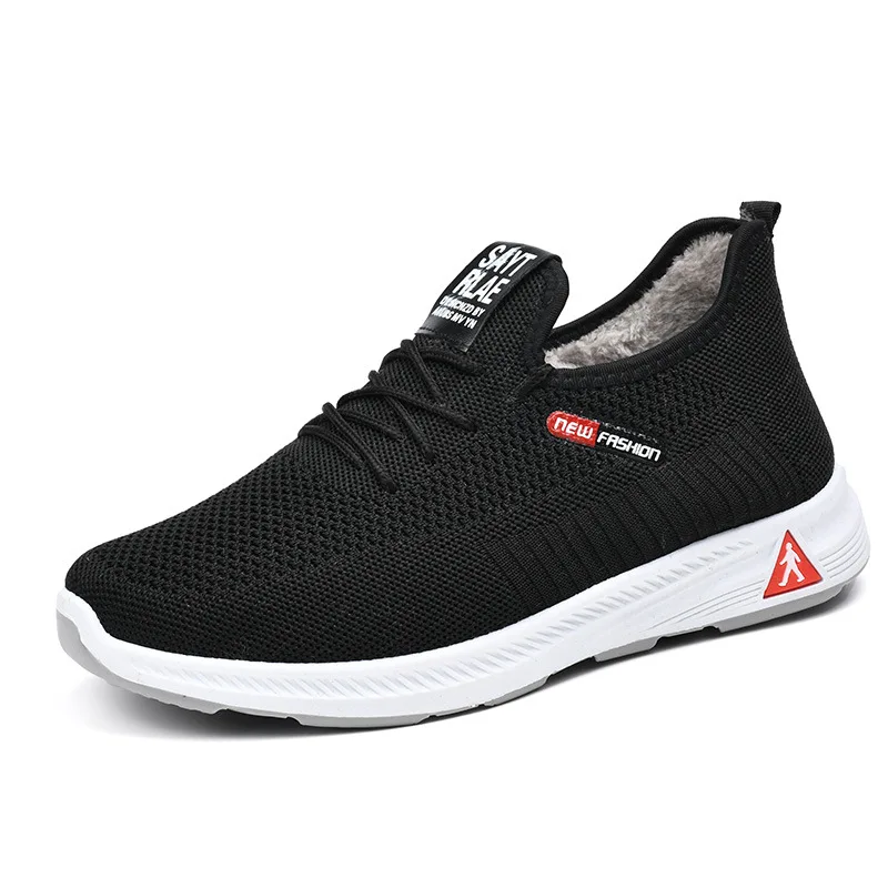 Мужские зимние кроссовки, плетеные сетчатые теннисные туфли, черные хлопковые туфли, Нескользящие туфли на платформе, новинка 2022, теплые мужские кроссовки без шнуровки