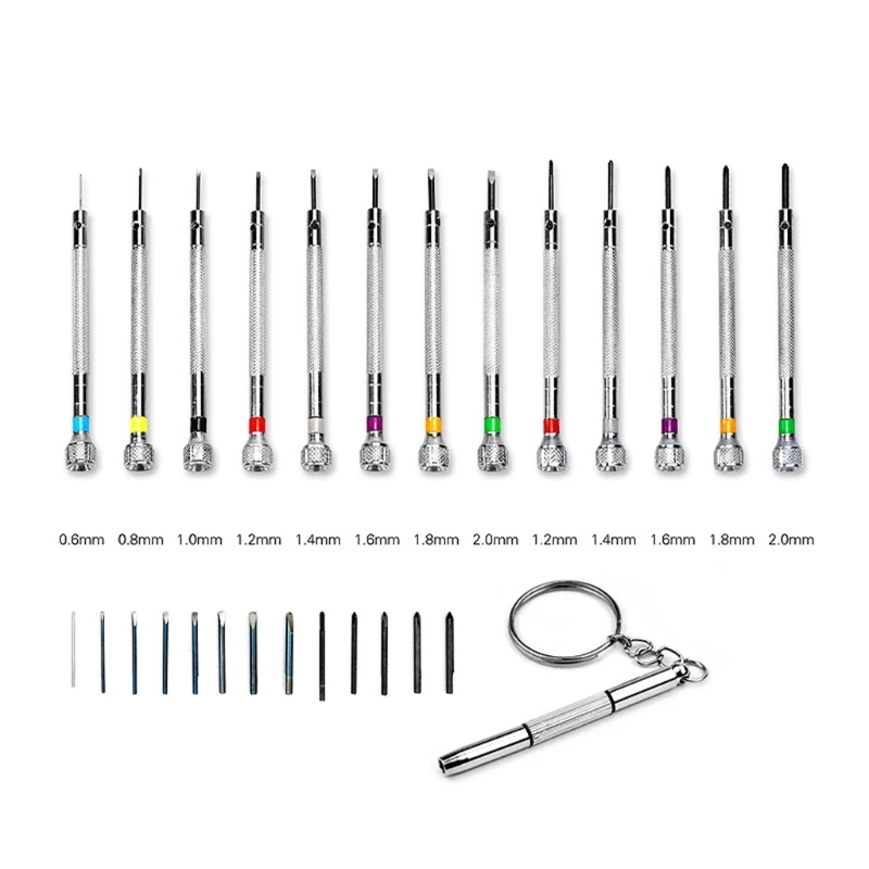 Профессиональный Набор отверток, набор высокоточных отверток 0,6-2,0 мм, 10 дополнительных сменных лезвий и 1 мини отвертка для ключейOOTDTYХарактеристики: посылка включает 13 отверток, 10 дополнительных лезвий и 1 мини отвертку для ключей.Стандартная отвертка с плоской головкой с поворотной головкой, простая и практичная. Цвет-кодовый для быстрой идентификации размера, стойкие к ржавчине лезвия.Размеры плоской головки 0,6 мм, 0,8 мм, 1,0 мм, 1,2 мм, 1,4 мм, 1,6 мм, 1,8 мм, 2,0 мм и размер поперечной головки 1,2 мм, 1,4 мм, 1,6 мм, 1,8 мм, 2,0 мм.Отвертки обладают превосходно взвешенным ощущением и долговечностью, специальной конструкцией ручки, легко Удерживают и прикладывают силу ладони.Идеально подходит для ремонта часов, замены батареи часов, удаления часов браслет с винтами ссылки, ремонт очков для глаз, работы ювелирных изделий и ремонта электроники и т. Д.Спецификация: Материал: углеродистая стальРазмер: 8,8x0, 8 см/0,31 дюймаПосылка включает в себя: 13 отверток10X лезвия1 мини отвертка для ключейРазмер плоской головки: 0,6/0,8/1,0/1,2/1,4/1,6/1,8/2,0 ммРазмер поперечной головки: 1,2/1,4/1,6/1,8/2,0 ммПримечание: возможны отклонения в 1-3 см вследствие измерений вручную. Пожалуйста, убедитесь, что вы не возражаете, прежде чем сделать ставку.Из-за разницы между различными мониторами изображение может не отражать фактический цвет изделия.