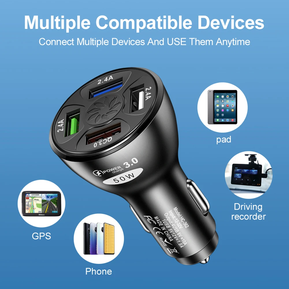 50 Вт 4-USB мини Приборная панель автомобиля зарядное устройство для сотового телефона прочный Быстрая зарядка универсальный автомобильный адаптер мобильный телефон зарядное устройство Характеристика: 1. Гладкая линия, тонкая работа, изысканный, легко носить с собой. 2. 4-стороннее автомобильное зарядное устройство, интеллектуальное переключение, поддержка 4 usb-интерфейсных устройств для быстрой зарядки. 3. Многофункциональная Защита, встроенный перегрузочный ток, перегрев, короткое замыкание и другие функции обеспечивают стабильную потерю тока. 4. Обновление интеллектуального чипа зарядки не является горячим, эффективно защищает оборудование. 5. Пряжка для карт, даже если она путешествует по Ухабистой Дороге, ее также можно стабилизировать. 6. Корпус изготовлен из поликарбоната + металла представляет собой противопожарную и противоосеннюю, прочную. Спецификация: Название: автомобильное зарядное устройство Цвета: белый, черный Материал: Огнестойкий Поликарбонат Введите: 12-32 в Выход: 4USB 5V / 7.0A, 9В/1.8A, 12V / 1.8A Размеры: 70*40*40 мм/2,76*1,57 * 1.57in Примечание: В связи с различиями мониторов и эффектами освещения реальный цвет товара может немного отличаться от цвета на фотографиях. Спасибо! Возможны отклонения в 1-2 см вследствие измерений вручную.