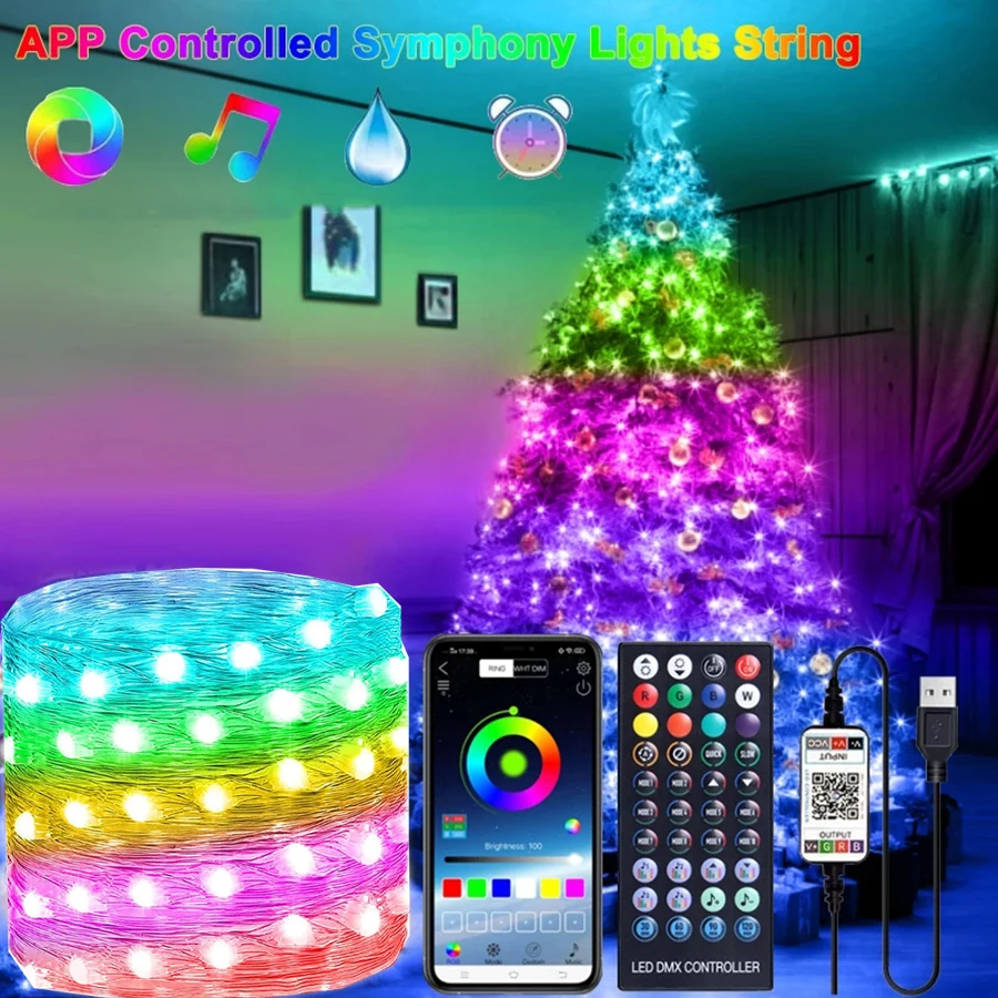 10/20 м умный светильник с рождественской елкой с Bluetooth App, сказочный светильник с пультом управления для свадебной вечеринки, RGB App, светильник с гирляндой, Декор