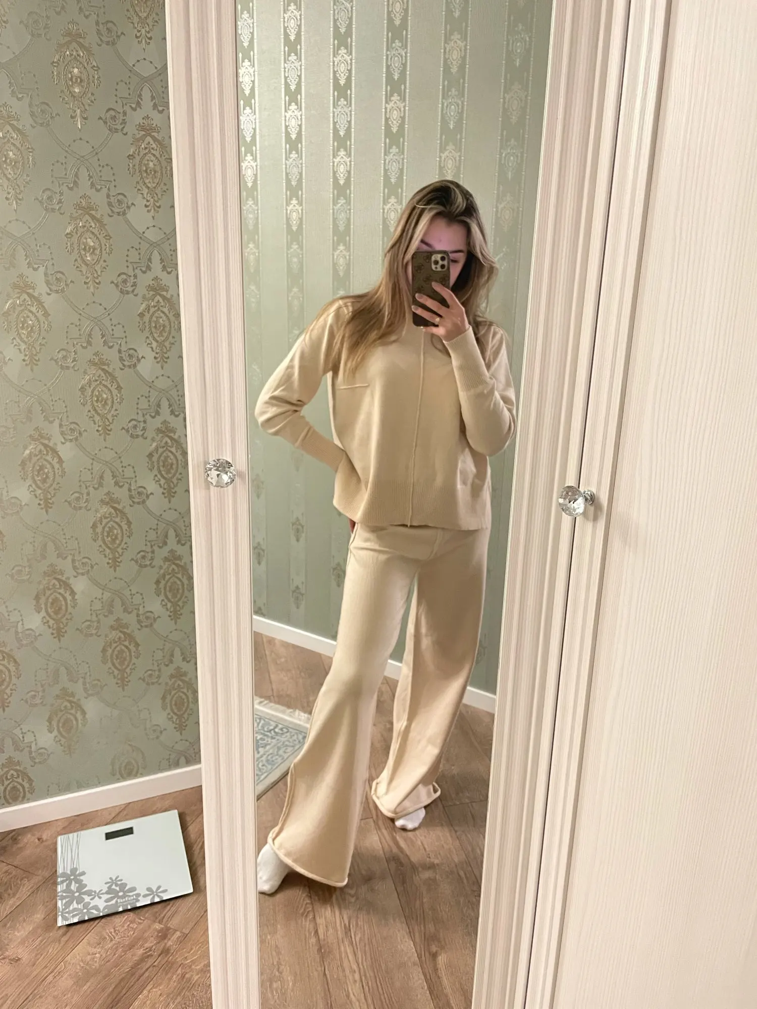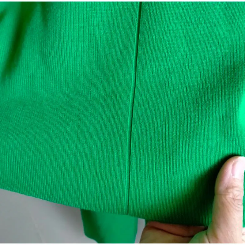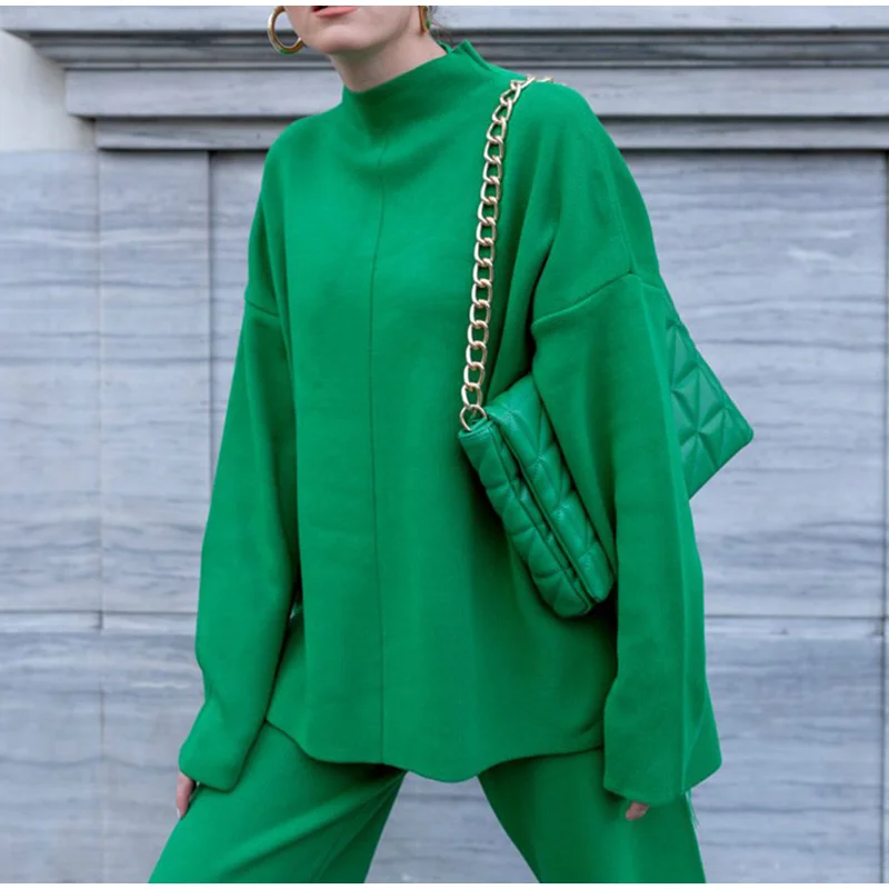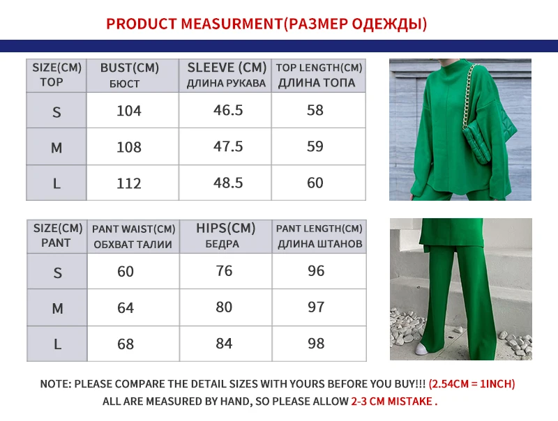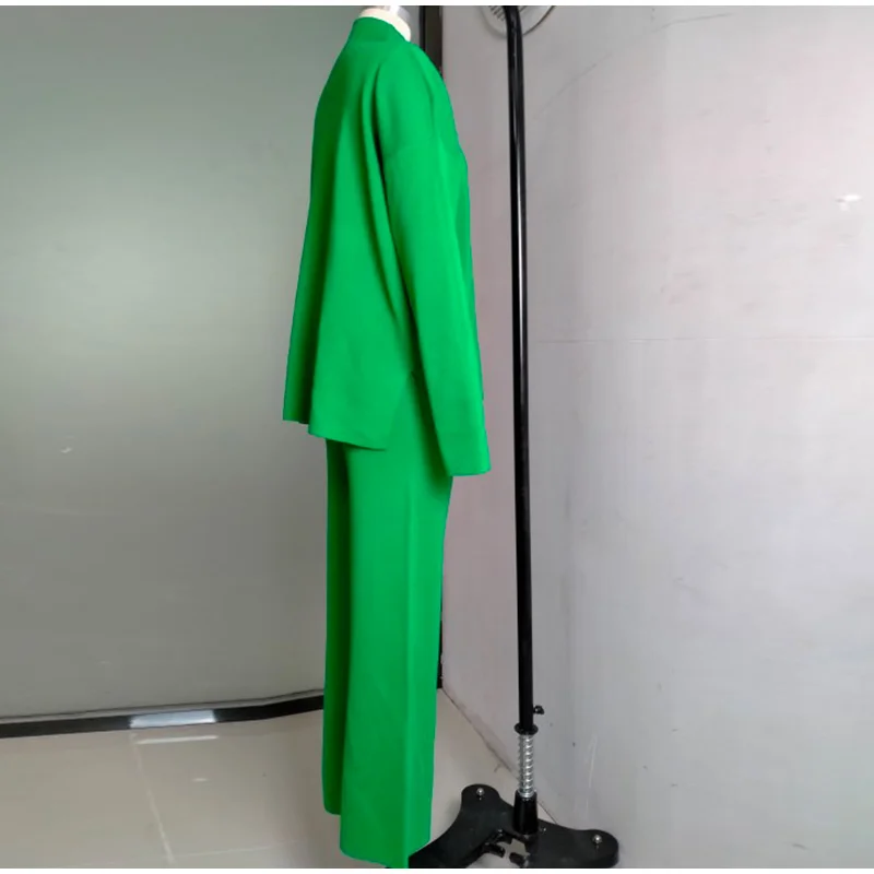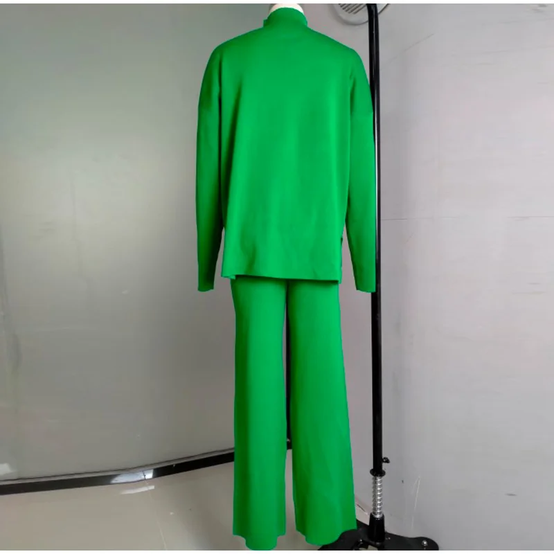 Сочно-зеленый крутой вязаный костюм. Номер цвета такой же, как на фото продавца, мои мерки 84-66-95, мой рост 172см, подходит костюм размера М. Брюки немного короче, а свитер мягкий и удобный. На то, чтобы больше прокомментировать продукцию Али на моей странице, потребовалось 3 недели
