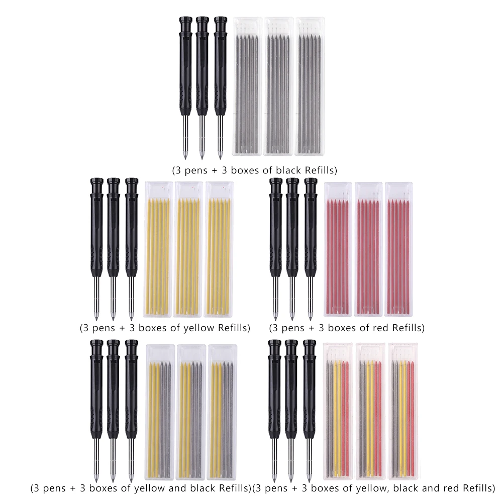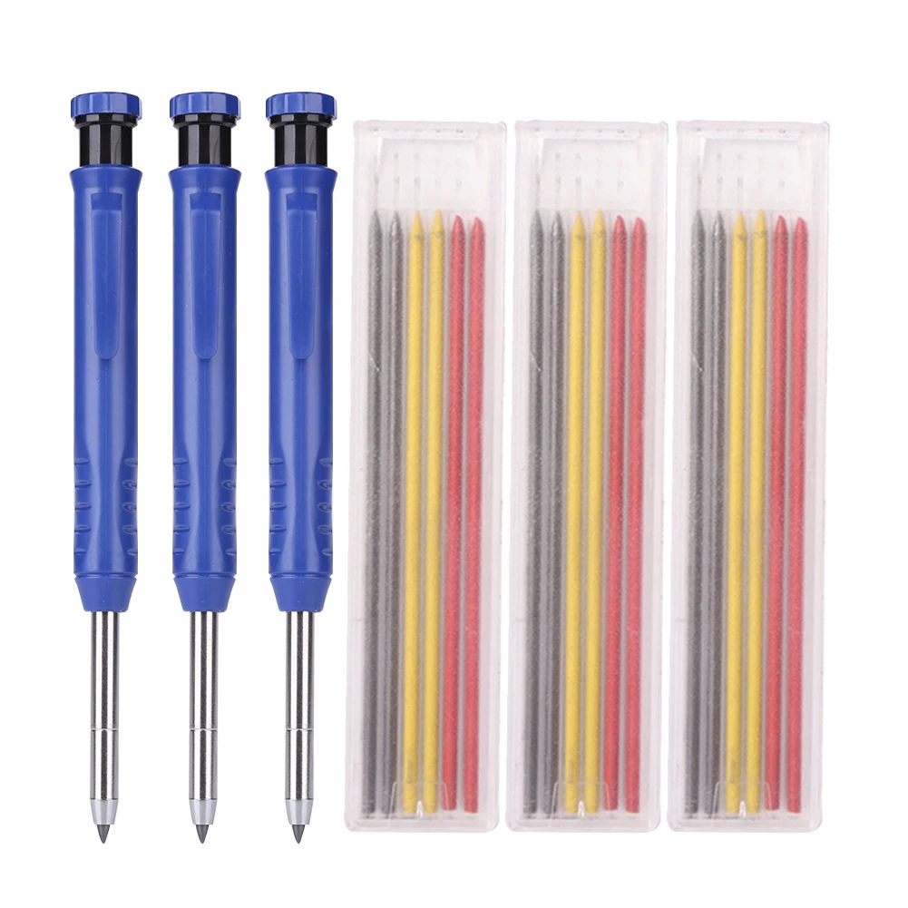 Набор карандашей для столярных работ с 18 стержнями, 3 шт., встроенная точилка, механический маркер с глубоким отверстием, инструмент для маркировки