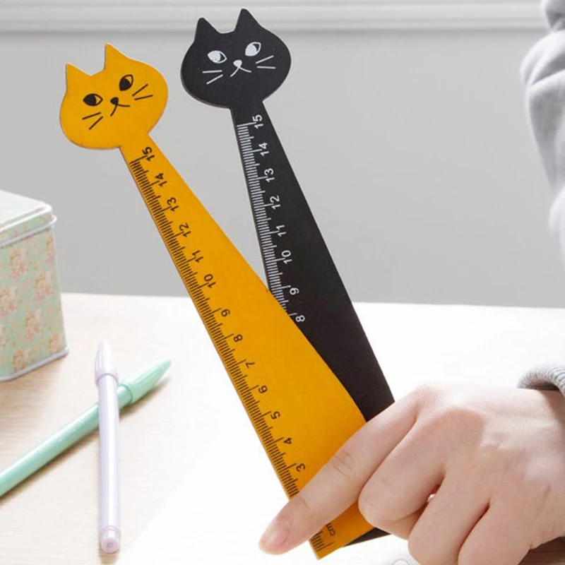 15 см милый кот прямая Линейка деревянные канцелярские инструменты ...