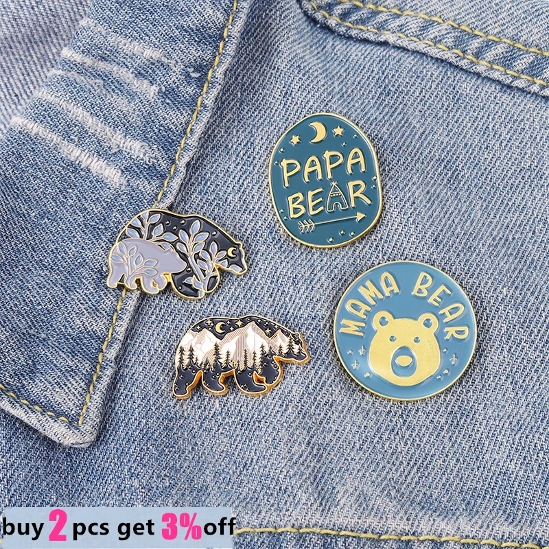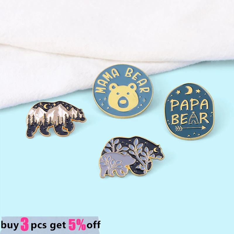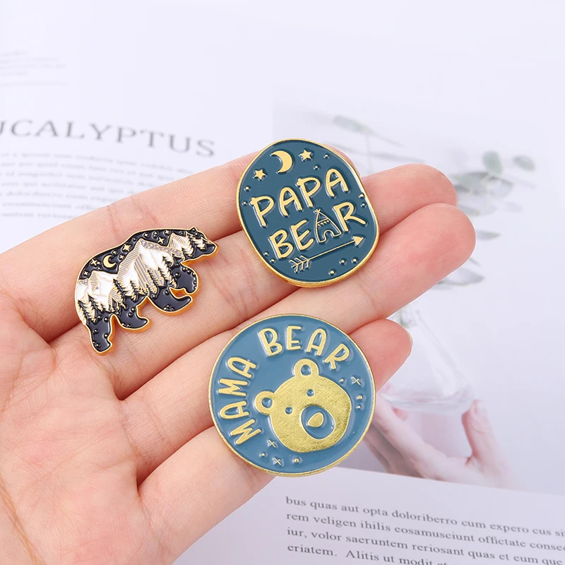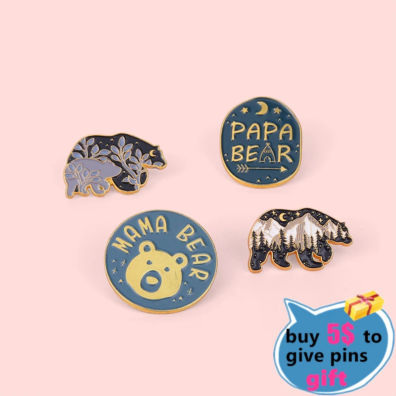 Заколки на заказ с изображением ночного неба, матери, отца, Мультяшные животные, день рождения, мама, папа, медведь, эмалированные заколки, ювелирные изделия, подарок для друга, оптовая продажа