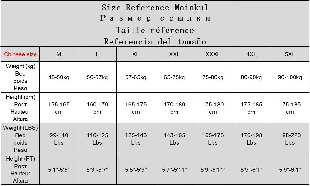 Chinese SizeM L XL XXL 3XL 4XL 5XL