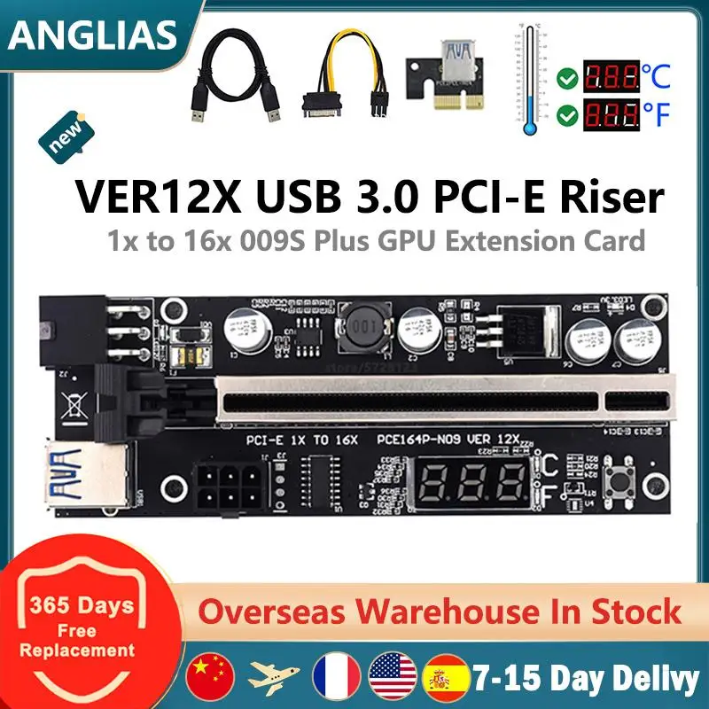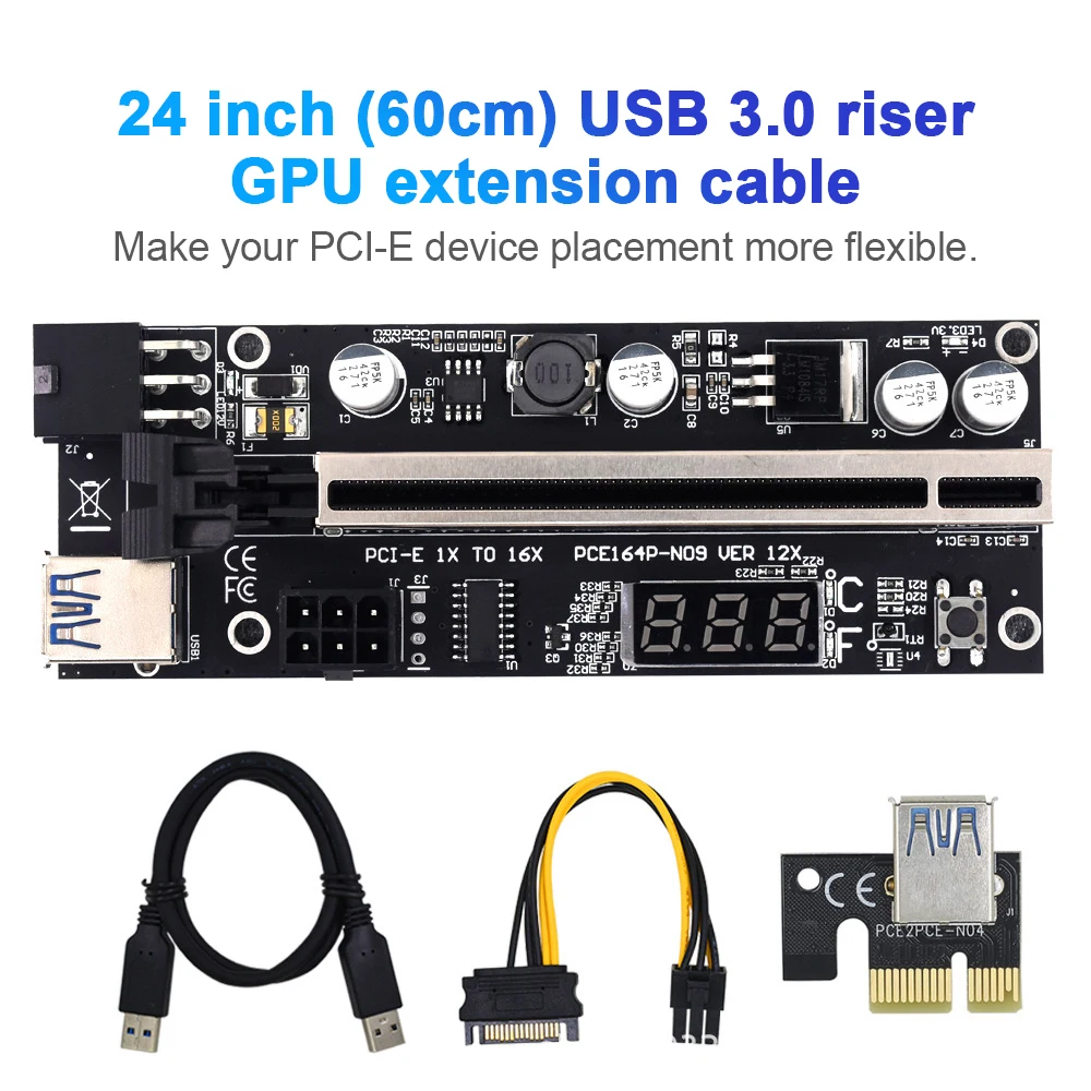 VER12X USB 3.0 PCI-E Райзер 009S Plus Экспресс 1x 4x 8x 16x расширитель графического процессора Райзер адаптер карта SATA дисплей температуры 6-контактный питание