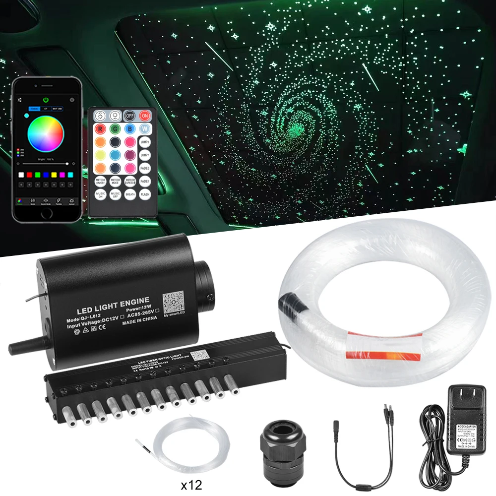 12 Вт Buletooth умное приложение для управления оптоволоконным фотоосвесветильник ением с эффектом метеорита