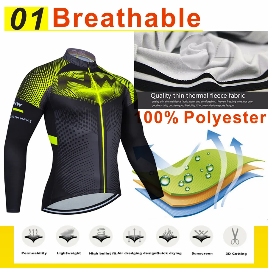 Комплект для велоспорта с длинным рукавом, на флисе, зимний, 2021