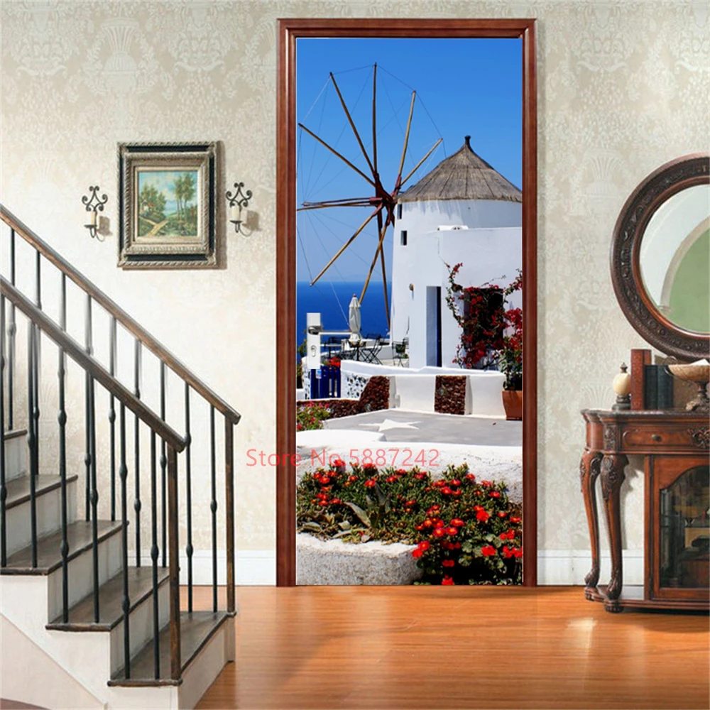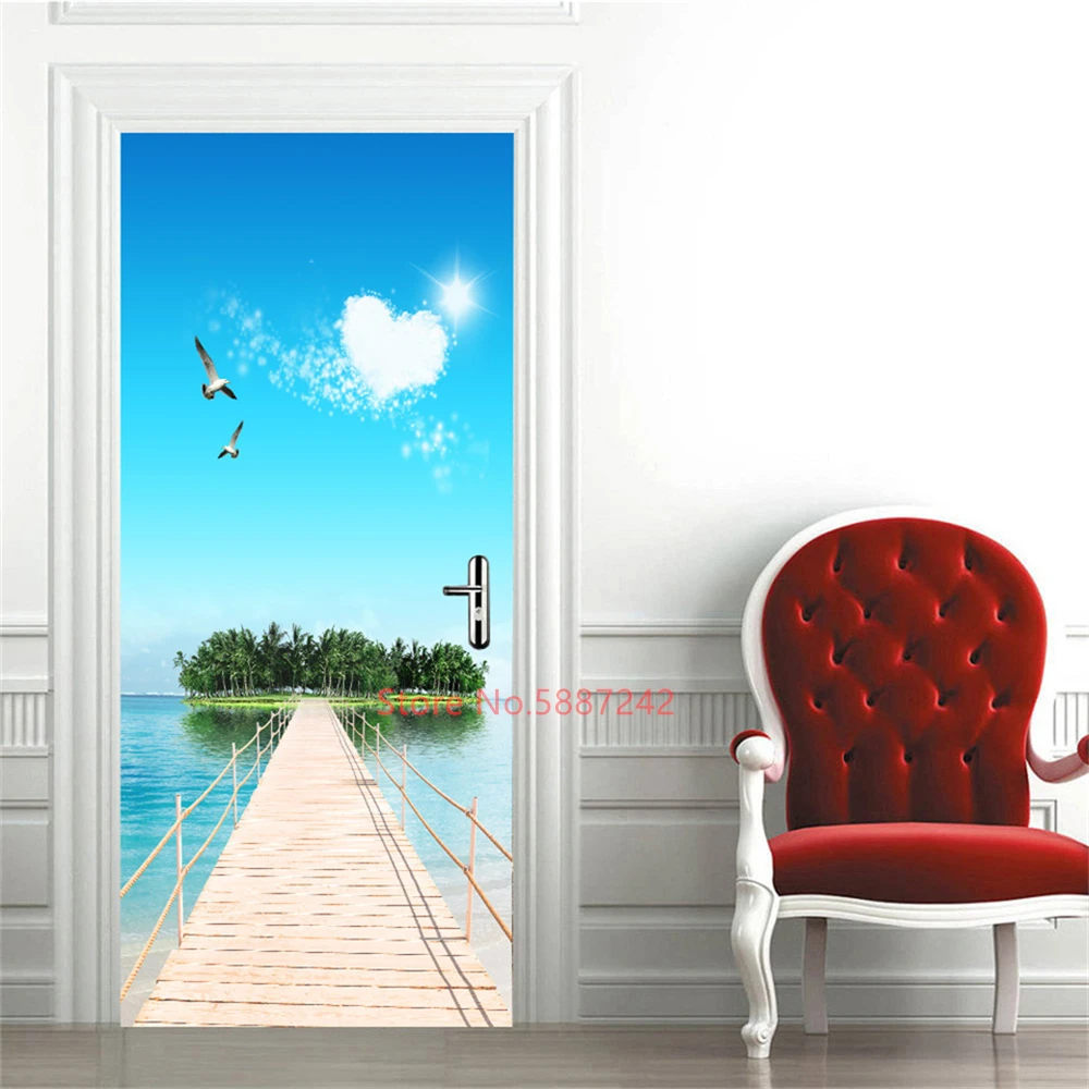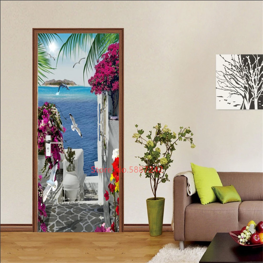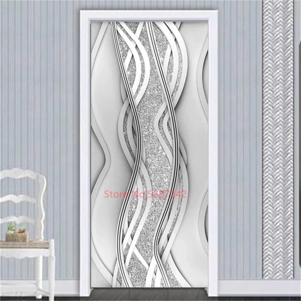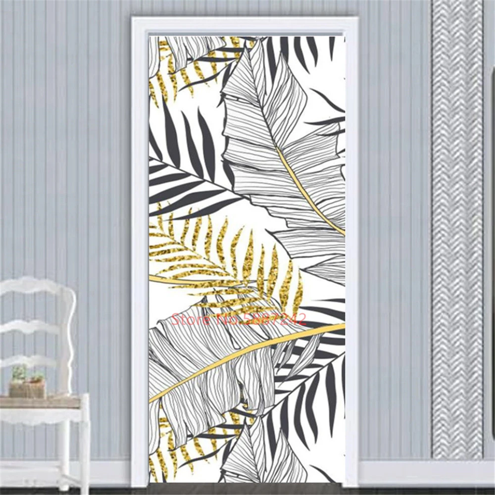 Наклейка на дверь с зеленой ладонью, самоклеящиеся декоративные виниловые обои с абстрактными линиями, декоративный постер для входной двери и спальни