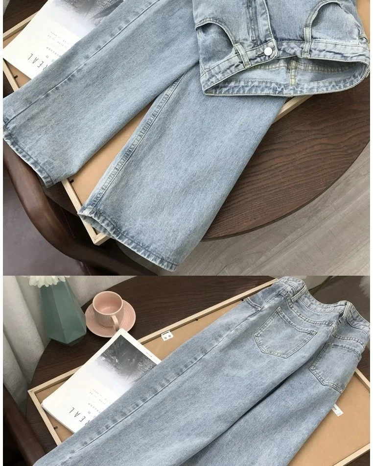 Женские джинсовые брюки-светильник, винтажные широкие брюки, корейс...
