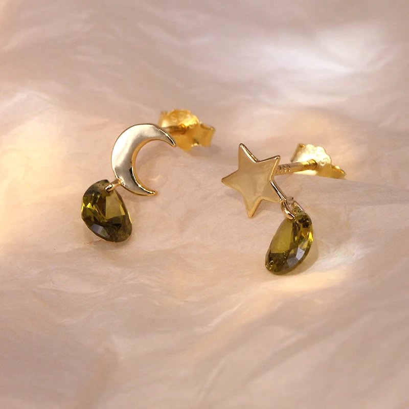 Женские маленькие серьги CANNER из серебра 925 пробы с зеленым Цирконом