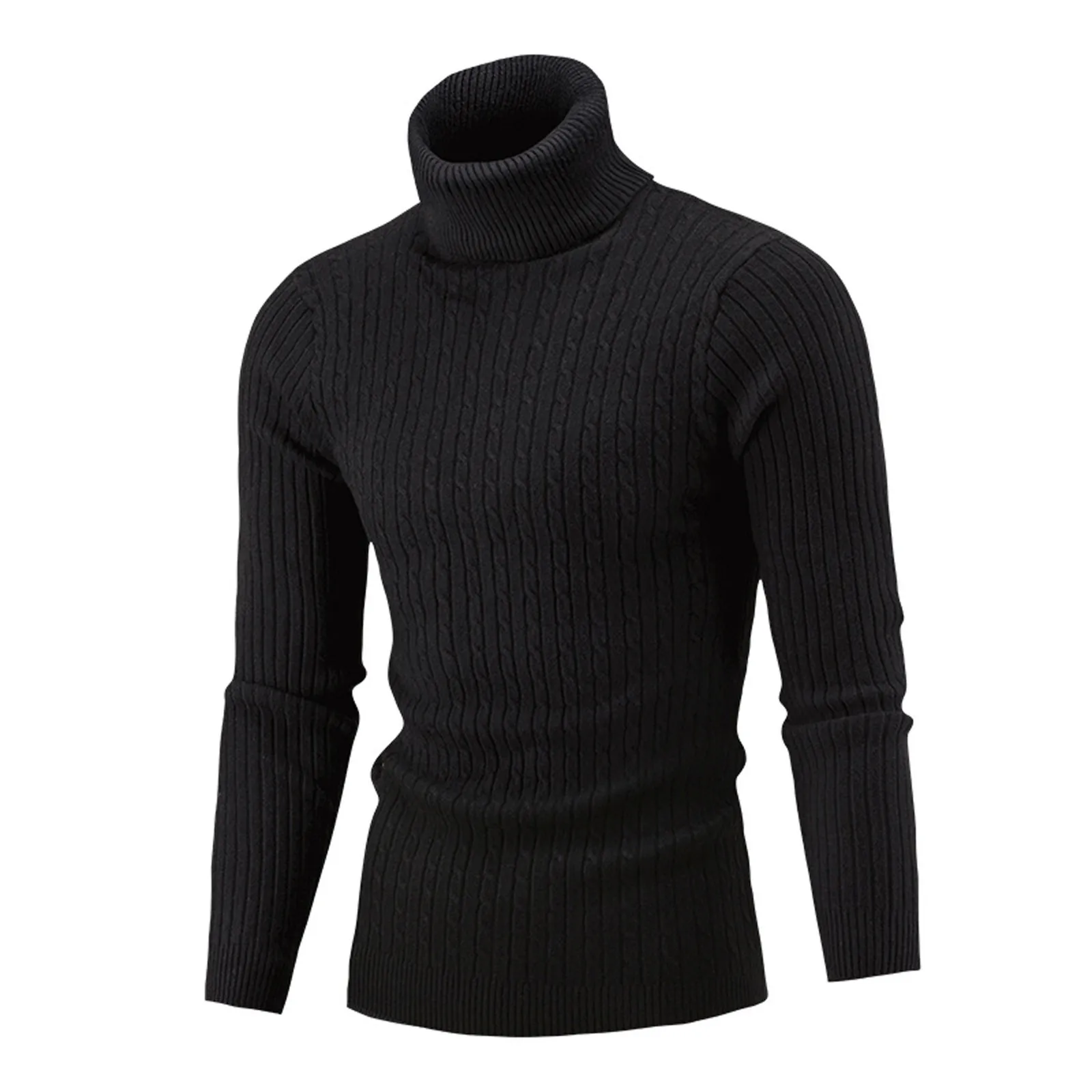 Мужской облегающий свитер с высоким воротником, повседневный плотны...