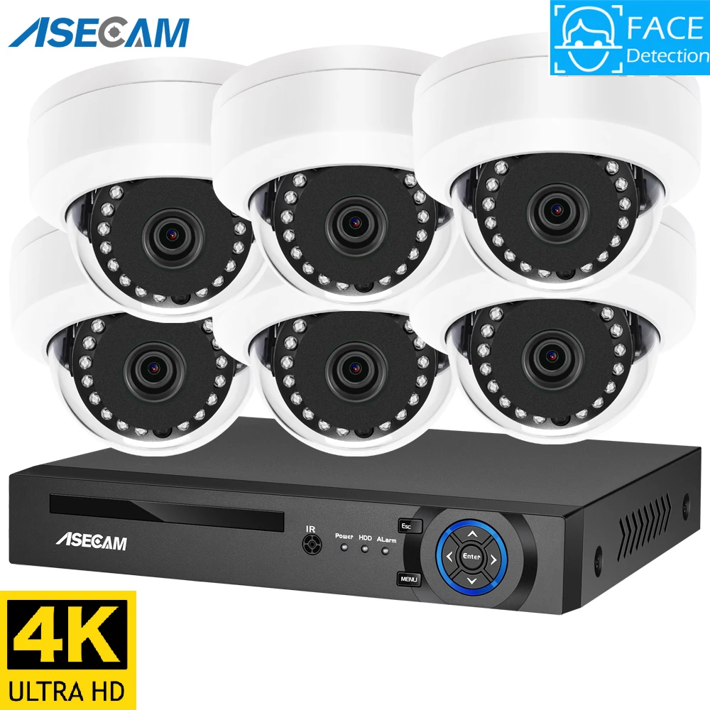 8MP 4K Система ip камера видеонаблюдения с распознаванием лица POE NVR комплект видеорегистратор купольная домашняя уличная AI человека видеонаблюдение Xmeye