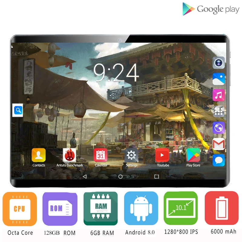 10-дюймовый планшетный ПК Android 9,0 Восьмиядерный 4 Гб RAM 128 ГБ ROM 1280*800 IPS закаленное стекло 2.5D экран 10.1 IPS