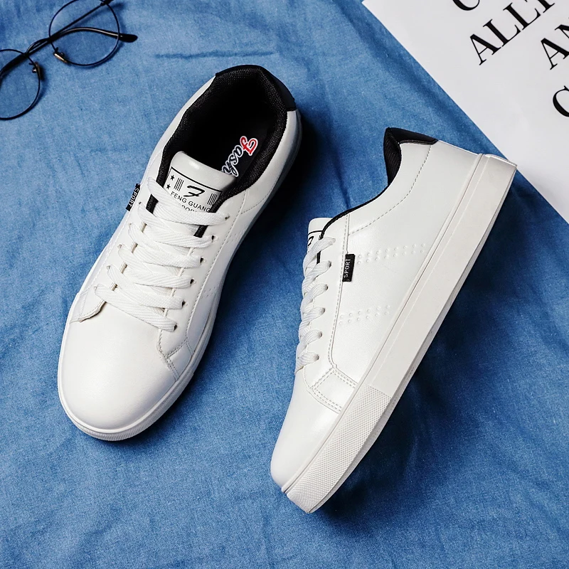 Мужские кожаные кроссовки, белые дышащие повседневные мужские кроссовки с вулканизированной подошвой, для осени, 2021