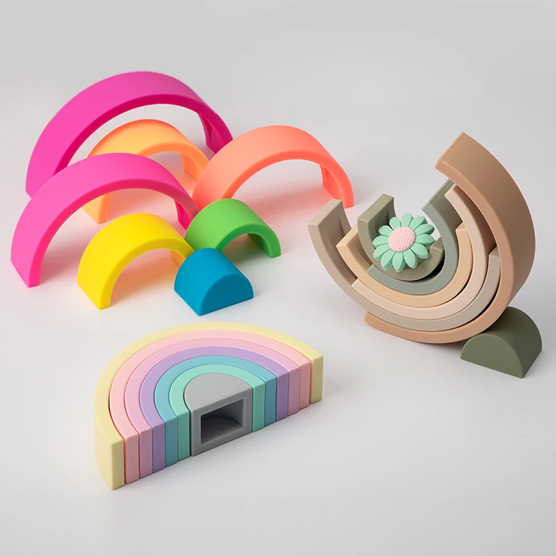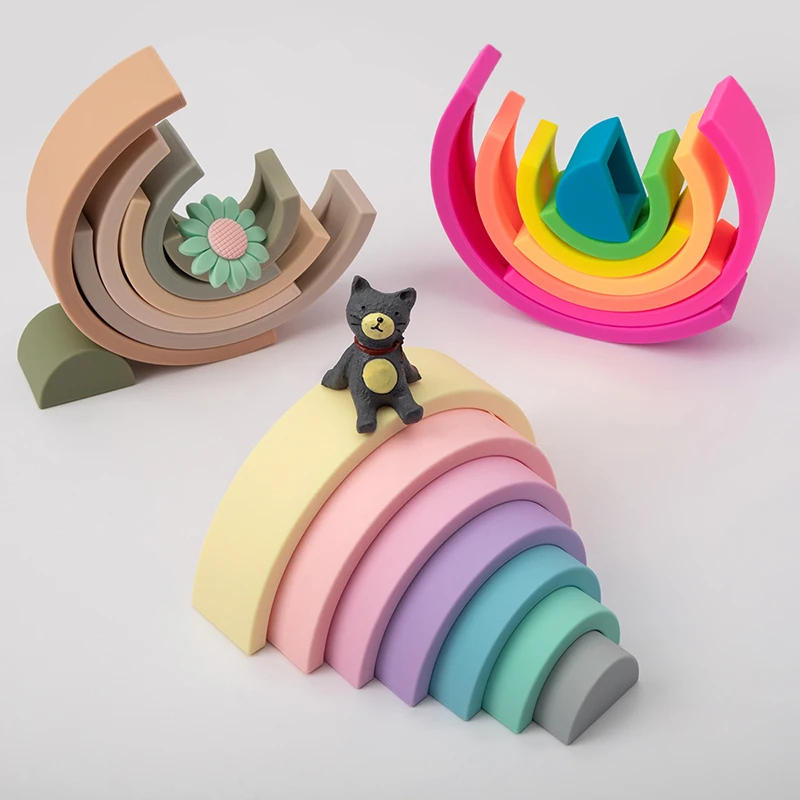 TYRY.HU Новейшие 710 шт. силиконовые строительные блоки Радужный мягкий блок 3D Дженга Обучающие игрушки Монтессори штабелируемые блоки детский подарок