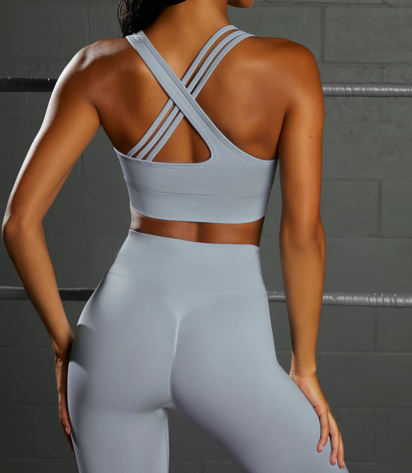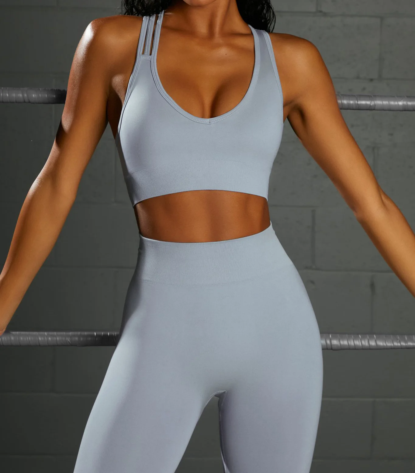 Комплект из 2 предметов, бесшовный Женский комплект для йоги, спортивные штаны, бюстгальтер, спортивный комплект для тренировок в тренажерном зале, короткий топ с высокой талией, леггинсы для бега