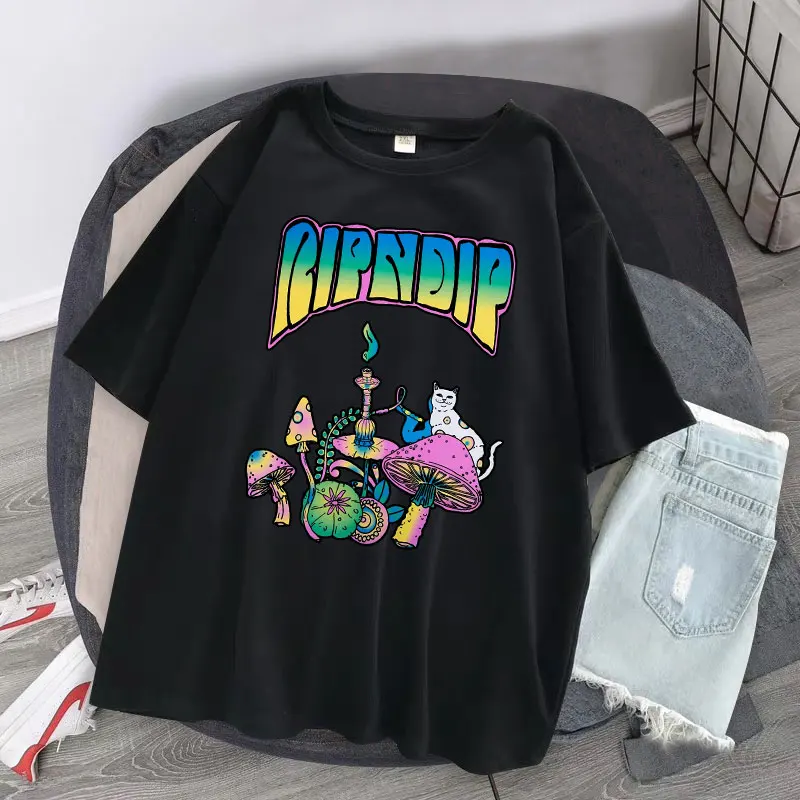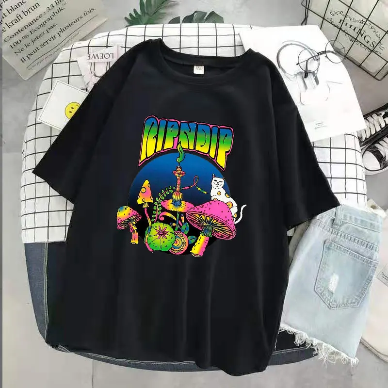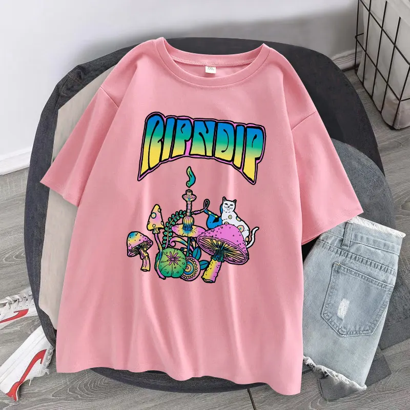 Футболка хлопковая для женщин и мужчин, цветная тенниска с принтом грибов и котят в стиле Харадзюку, Повседневная модная майка, уличная одежда