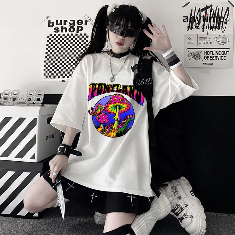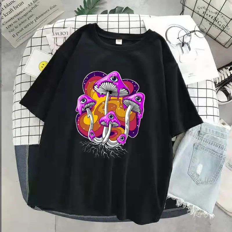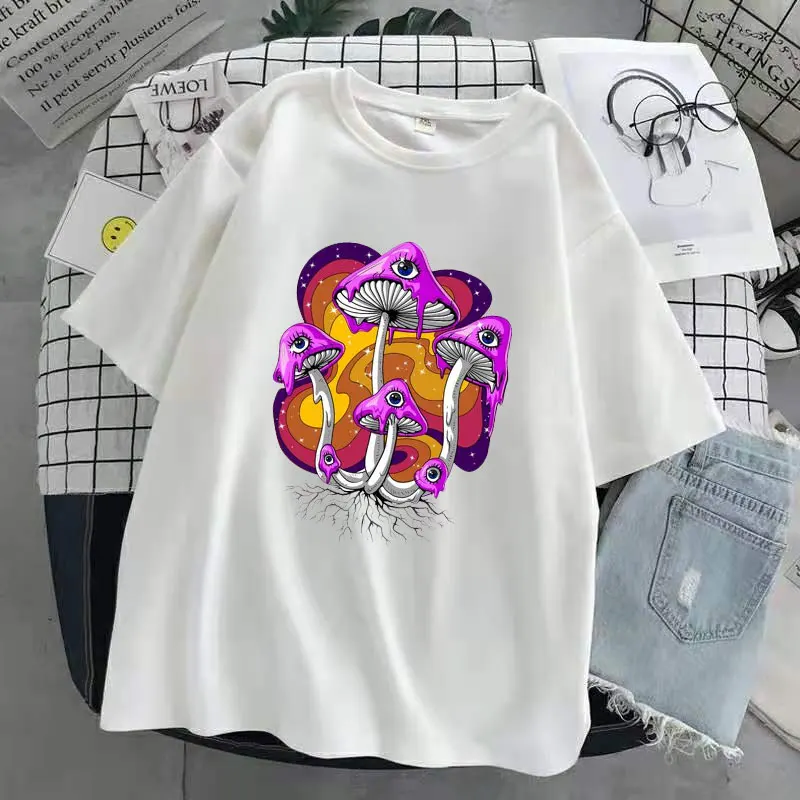 Лучшая хлопковая Футболка Харадзюку с красочным принтом в виде гриб...