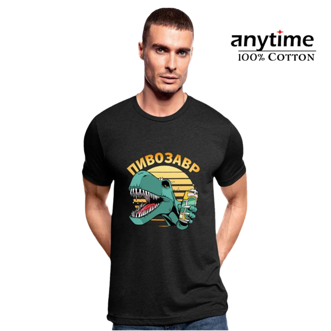 Футболка для мужчин, летняя бутиковая Футболка с принтом пивозавра,...