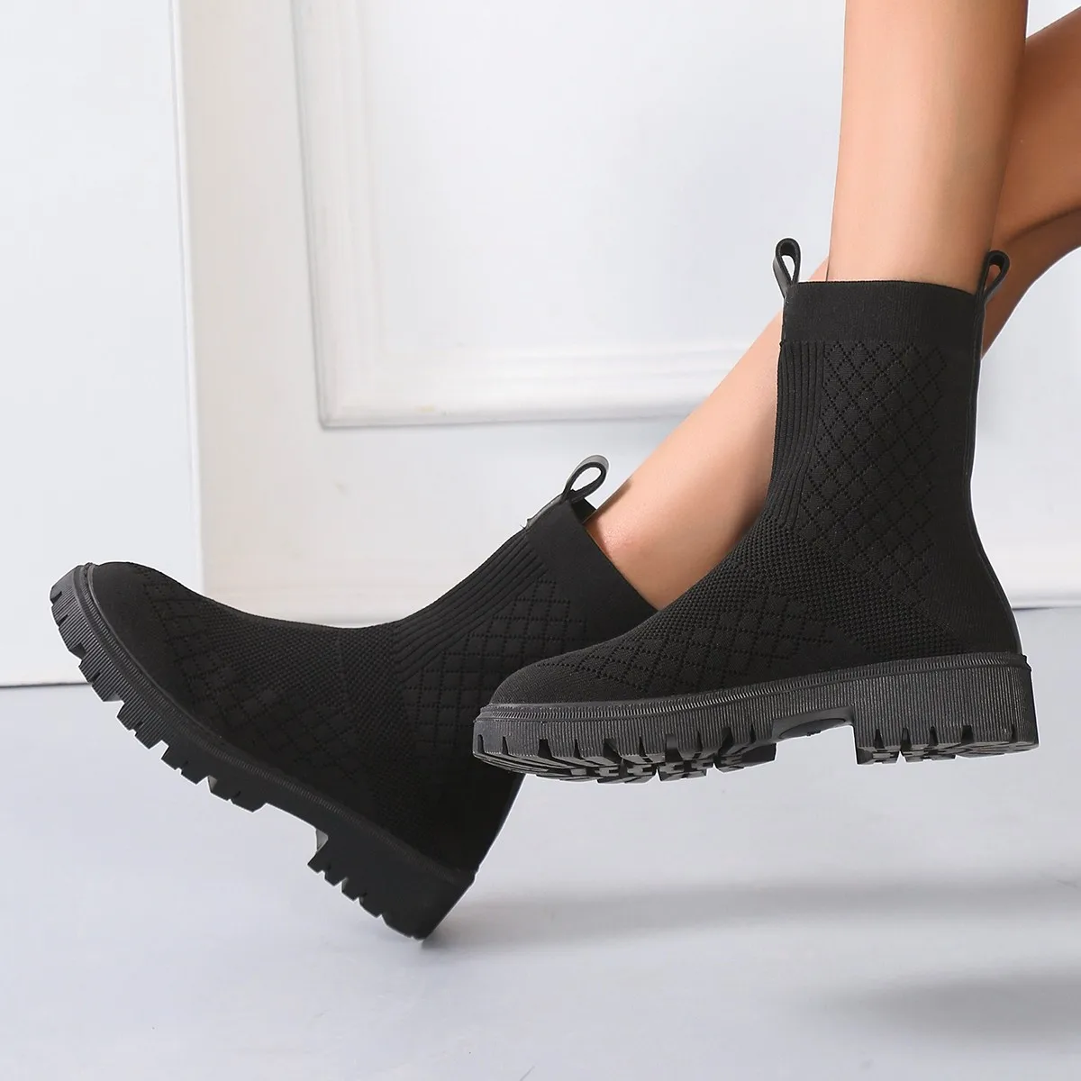 Женские ботинки без шнуровки на платформе в западном стиле трикотаж...