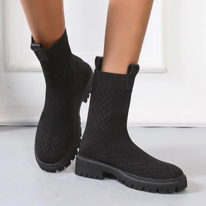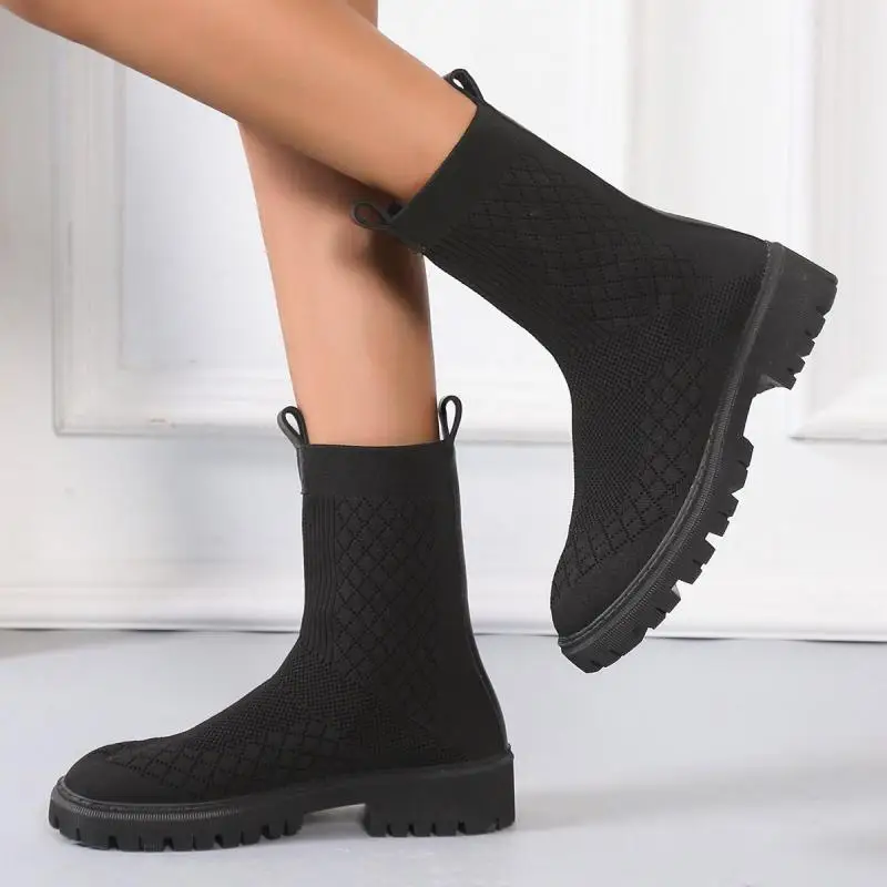 Хит продаж, новинка, женские ботинки, осень 2022, модные вязаные эластичные носки, короткие эластичные тканевые ботинки на толстом каблуке
